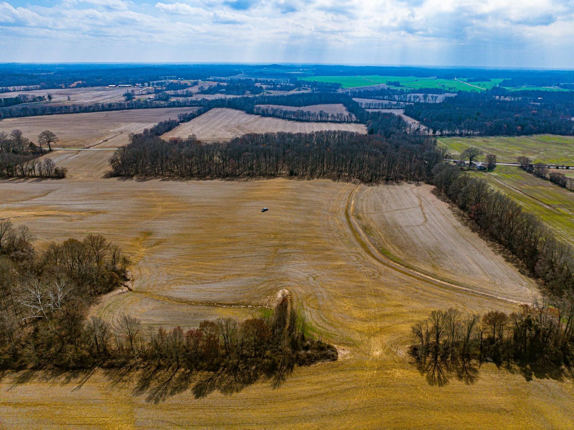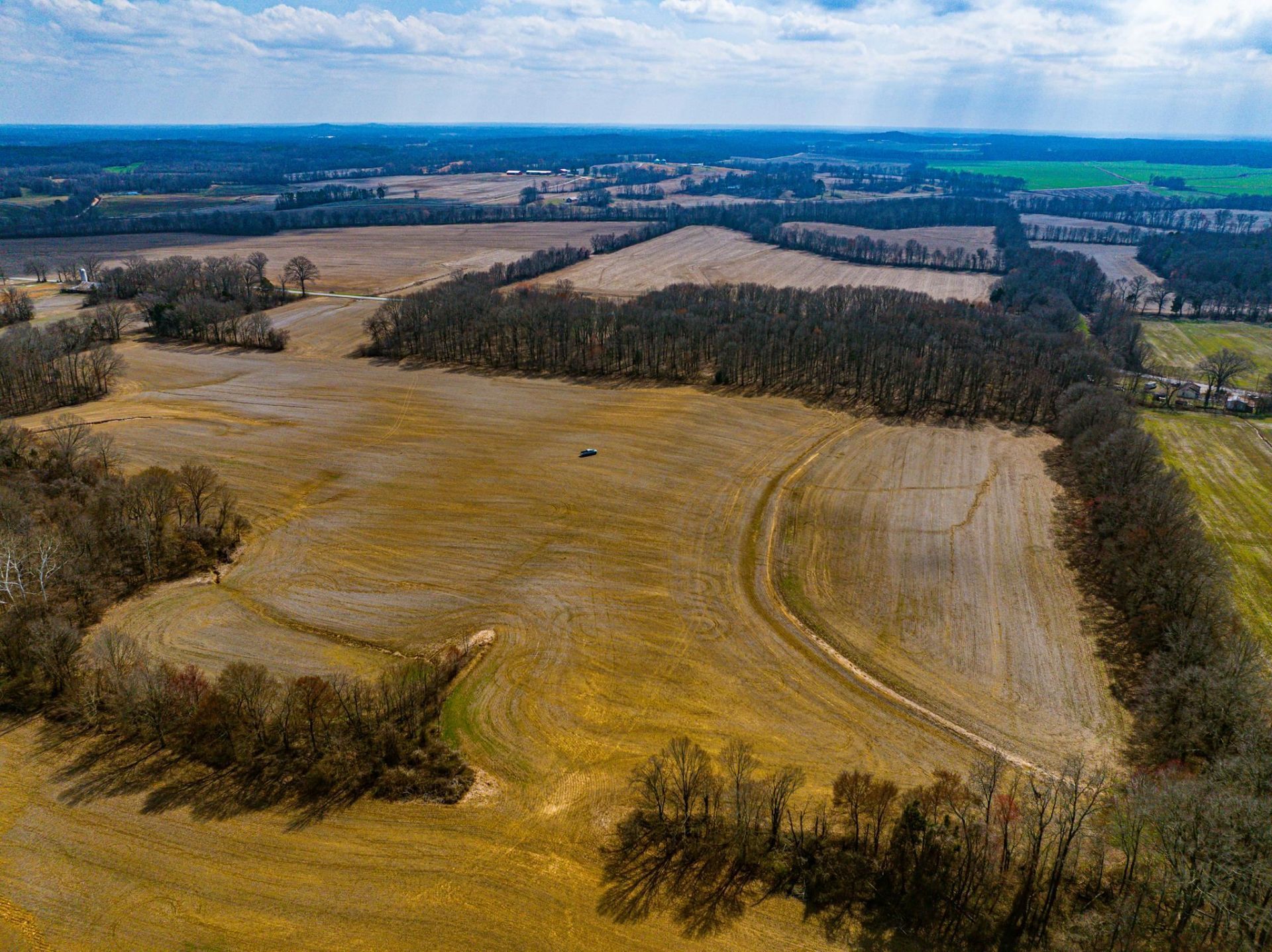 Located along George Butler Road in Gibson County, Tennessee, this 140.5 acre property offers a strong mix of productive farmland, buildable acreage, and recreational appeal in Northwest Tennessee. The farm includes approximately 92.57 acres of tillable ground with established row crop production, featuring Collins, Providence, Grenada, Routon, and Lexington silt loam soils common to the region. An additional 47.93 acres provide multiple potential homesites with nearby electric access, offering flexibility for a home, cabin, or small farm. Natural features include Thompson Creek frontage and two wet-weather creeks, enhancing drainage and wildlife habitat. Timber pockets and wooded corridors support deer and turkey populations. Paved road frontage allows easy access for farming and residential use. This tract can be purchased as a whole, or split into two offerings: 57.76 acres (north tract) and 82.74 acres (south tract), providing flexible buying options.