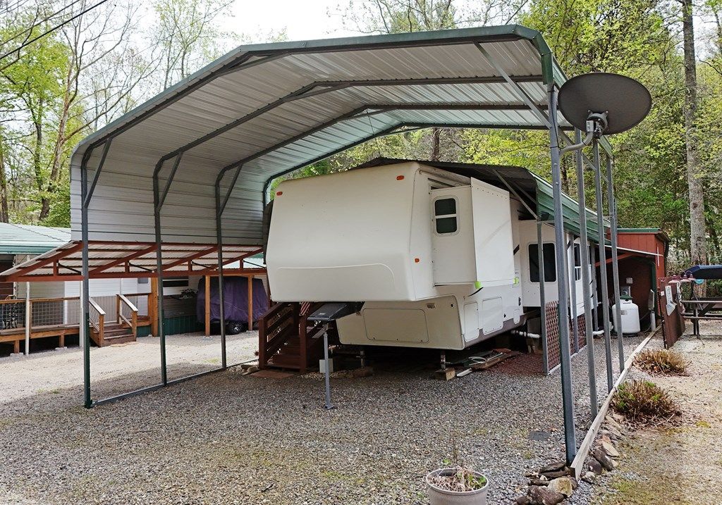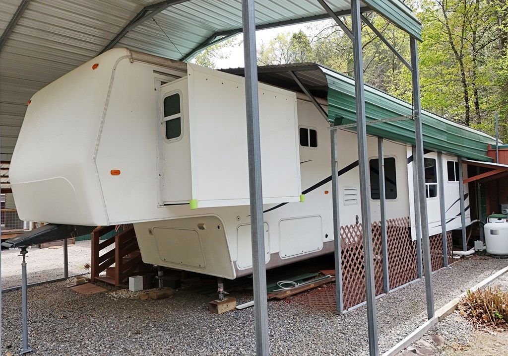 Tucked along the banks of stunning Fodder Creek, this unique property offers the perfect blend of relaxation, comfort, and mountain charm. Sitting on 0.07 acres, you'll enjoy the sights and sounds of one of the larger, more impressive creeks in the area?a rare find! The property features a 2005 River Canyon by Travel Supreme fifth wheel, thoughtfully updated and move-in ready. Inside, you'll find a one bedroom, one bath layout with updated furniture, new luxury vinyl flooring, and several key upgrades including a newer water heater, updated appliances, mini-split system, and propane heater for year-round comfort. The camper is protected by a metal carport, offering covered parking and added longevity. Just behind the camper sits a fully functional guest house, complete with one bedroom, one bath, a living room, and full kitchen?perfect for hosting family and friends. Step outside and take in the real showstopper?a large deck perched right on the creek, ideal for entertaining, relaxing, or simply enjoying the peaceful sounds of rushing water. Sold completely furnished and including a washer and dryer, this property is ready for immediate enjoyment?whether you're looking for a weekend retreat, full-time living, or an investment opportunity.