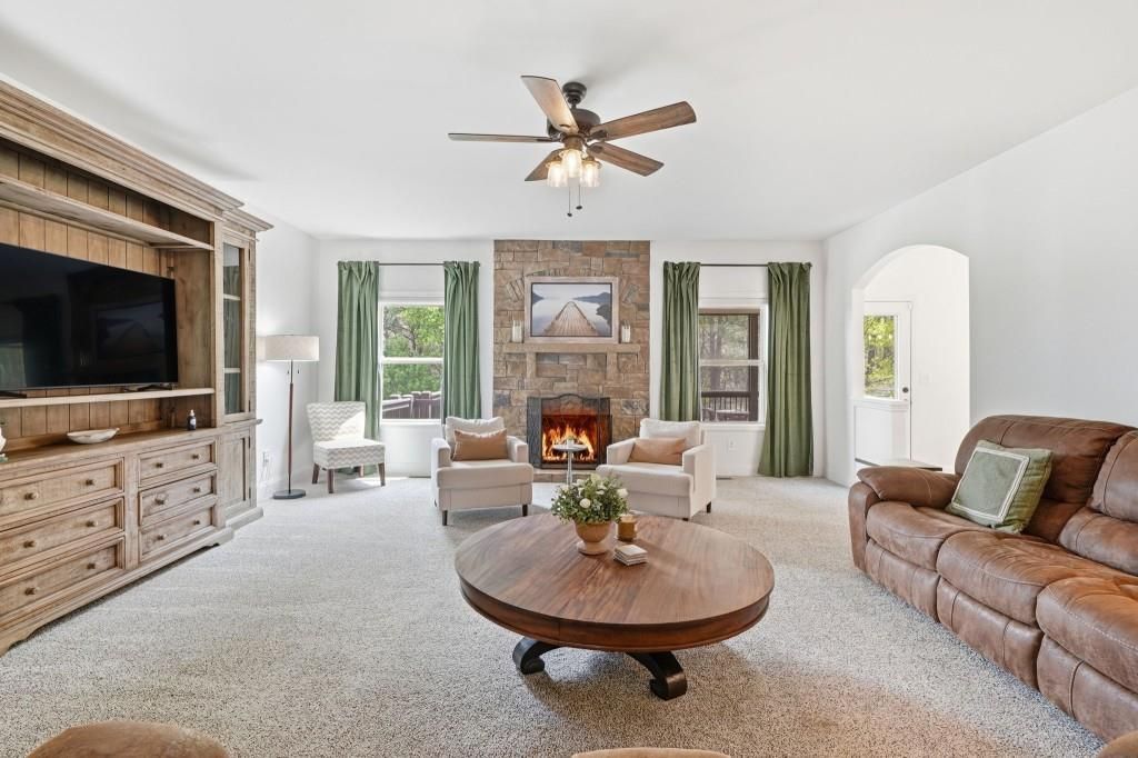 Perfectly positioned on a Large, Flat Lot in the sought-after Carter Grove Community, this Stunning Six Bedroom, Five Bathroom Home offers the perfect blend of Space, Functionality, and Elevated Living - designed for both Everyday Comfort and Exceptional Entertaining. A Grand Two-Story Foyer welcomes you inside, setting the tone with Upgraded Flooring and an Abundance of Natural Light. Flanked by a Private Home Office and Formal Dining Room, the entry creates an elegant yet functional layout ideal for today's lifestyle. The Fireside Family Room serves as the heart of the home, featuring a Striking Stone Fireplace and an Open Flow into the Chef's Kitchen - designed to impress with an Oversized Granite Island, Stainless Steel Appliances, Double Wall Oven, and Multiple Dining Areas perfect for gathering. Just off the kitchen, the Newly Stained Screened Porch offers a true Indoor-Outdoor Living Experience - ideal for morning coffee, game days, or relaxing while enjoying Peaceful Mountain Views. The Main Level Guest Suite provides flexibility for visitors or multi-generational living, complete with a Walk-In Closet and Full Bathroom. Upstairs, the Primary Suite is a True Retreat, featuring its own Fireplace, Sitting Area, and a Fully Renovated Spa-Inspired Bathroom with Freestanding Soaking Tub, Frameless Glass Shower, Dual Vanities with Quartz Countertops, and an Expansive Walk-In Closet. Three Additional Bedrooms, Two Bathrooms, and a Versatile Loft Space complete the upper level. The Finished Terrace Level expands your living space even further, offering a Private Theater with Built-In Speakers, Large Family Room, Wine Room with Custom Rack, Additional Bedroom and Bathroom, plus Garage Access - ideal for entertaining, guests, or creating your own retreat. Step outside to your Entertainer's Dream Backyard featuring a Spacious Deck, Patio, and Plenty of Room for a Future Pool, with the yard extending beyond the fenced area for added flexibility. A Rare Third Garage adds even more value for storage, hobbies, or extra vehicles. Recent System Updates including a New HVAC System and New Water Heater add peace of mind for years to come. Located in a Golf Cart-Friendly Community and just minutes from shopping, dining, and everyday conveniences, this home offers a lifestyle of Comfort, Space, and Connection. A rare opportunity to own a truly expansive, move-in ready home in one of Cartersville's most desirable neighborhoods.