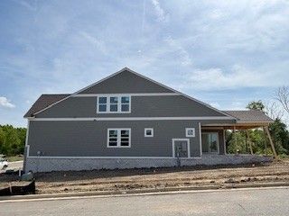 Lot # 136 is a large corner lot with plenty of room for an inground pool!! This thoughtfully designed Parkette plan offers the ease of completely one-level living with added flexibility of an upstairs. The main level features a spacious primary suite along with 2 secondary bedrooms, creating a comfortable and functional layout for everyday living. Upstairs, a private fourth bedroom and bonus room provide the perfect space for guests, a home office, or a media retreat. Smart design, generous living spaces, and timeless style make this home as practical as it is inviting. Does not have the 3rd car standard, but a large flex room and half bath instead. Large vaulted ceilings in kitchen/living with cedar beams!