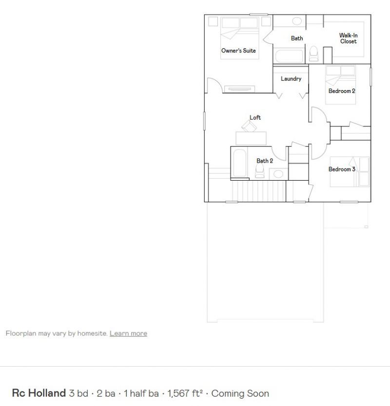 Introducing The Holland?a thoughtfully designed new home offers 1,567 square feet of comfortable, modern living across two well-planned floors. Featuring 3 bedrooms, 2.5 bathrooms, and a spacious 2-car garage, the layout balances functionality with style. The main level is anchored by a welcoming family room that flows seamlessly into a multifunctional kitchen and dining area, creating an open-concept space ideal for both everyday living and entertaining. A convenient half bath is also located on the first floor, along with access to a covered rear patio?perfect for relaxing or hosting outdoors. Upstairs, all three bedrooms are thoughtfully positioned for privacy and convenience. A versatile loft provides additional living space that can be used as a home office, media area, or playroom. The owner's suite offers a tranquil retreat, complete with a private bathroom and a generous walk-in closet, while the secondary bedrooms share a well-appointed full bath.