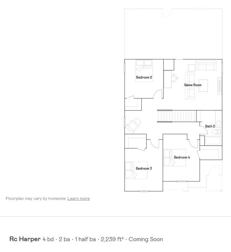 Introducing The Harper?a beautifully designed two-story home that combines space, comfort, and modern functionality. Featuring 4 bedrooms, 2.5 bathrooms, and a 2-car garage, this home is thoughtfully crafted to meet the needs of today's lifestyles. The main level showcases a private first-floor owner's suite, creating a peaceful retreat complete with a full bathroom and a spacious walk-in closet. The heart of the home is an open-concept layout where the kitchen and family room come together seamlessly, offering the perfect setting for everyday living, entertaining, and effortless multitasking. A convenient half bath and easy access to the garage add to the home's practicality. Upstairs, three additional bedrooms provide plenty of space for family or guests and are centered around a versatile and inviting game room?ideal for relaxing, working, or play. With its smart layout and well-appointed spaces, The Harper delivers both comfort and flexibility in a home designed to grow with you.