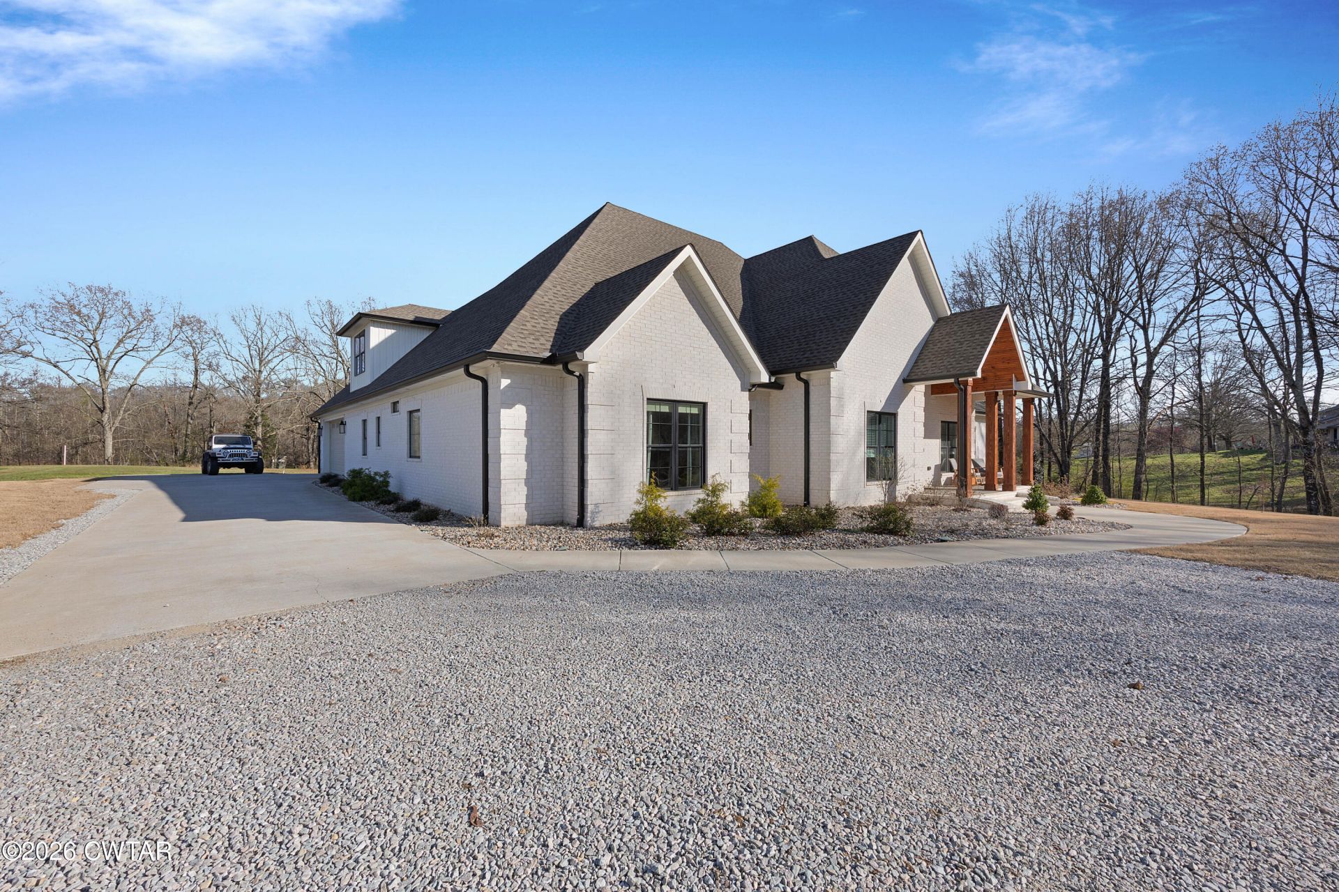 Custom-built brick home on 4.9 acres in the county (South Gibson School District) offering privacy, scenic views, and modern luxury. This 4 bedroom, 3.5 bath split floorplan home (plus additional half bath plumbed upstairs) with office is ideal for those seeking acreage, custom construction, oversized garage and high end finishes. Welcoming double iron front doors with keyless entry lead into a thoughtfully designed floor plan featuring hardwood and tile flooring, open concept living and abundant natural light. The dream kitchen includes a large island, quartz countertops, stainless steel KitchenAid appliances, gas range, pot filler, over sized pantry and custom cabinetry-perfect for entertaining. The spacious primary suite offers a private retreat with his and her walk-in closets, spa-like bath, marble walk-in shower, and direct access to a large laundry room with built in storage. Enjoy indoor-outdoor living with a covered back patio, outdoor fireplace, and expansive retreat space. Interior highlights include a stone fireplace with hearth, dedicated office, upstairs storage room/2nd office and walk in attic. Energy efficiency is a standout feature with spray foam insultation, helping reduce utility costs and improve year around comfort. Surrounded by mature trees, beautiful views, and serene setting, this property is perfect for buyers looking for luxury, land, privacy, and refined living.