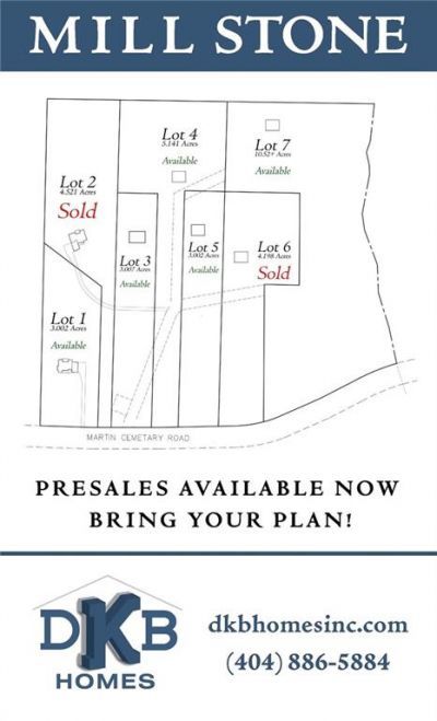 Great 3-acre residental lot located within the Carrollton city limit in the new Mill Stone subdivision. Enjoy the perfect blend of privacy and convenience with plenty of space for Bill Lindsay, Principal Owner of DKB Homes to build your dream home just minutes from shopping, dining and schools. Choose one of the thoughtfully designed DKB plans or bring your own!