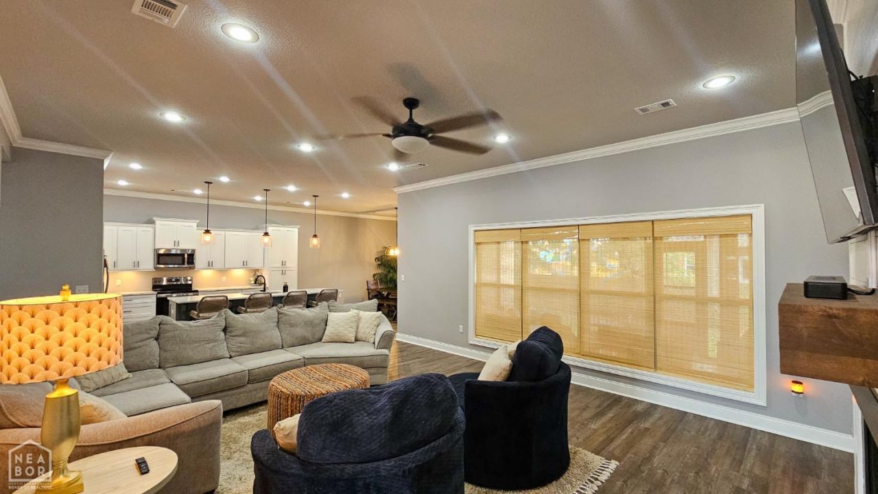Introducing this exquisite one-level brick home, hitting the market for the first time with over 2,500 sq. ft. of sophisticated living space. Luxury vinyl flooring is found throughout except in the baths that have ceramic tile. A wide entryway welcomes you into a spacious great room, highlighted by built-in shelving and a warm gas-log fireplace. This flows effortlessly into a modern kitchen and dining combo, equipped with solid surface countertops, a large pantry, abundant cabinetry, and an expansive breakfast bar/islandideal for entertaining. The Primary Suite is a true retreat, featuring a luxurious bath with dual vanities, a freestanding tub, a separate oversized custom-tiled shower, and an exceptionally large walk-in closet. Three additional bedrooms provide ample space and large windows for natural light. The home also includes a convenient laundry room, a full bath, and a guest half bath. Unwind on the screened sun porch, perfect for enjoying rainy days or sunny afternoons in your private, wood-fenced backyard. Located on a generous lot in the Brookland School District.