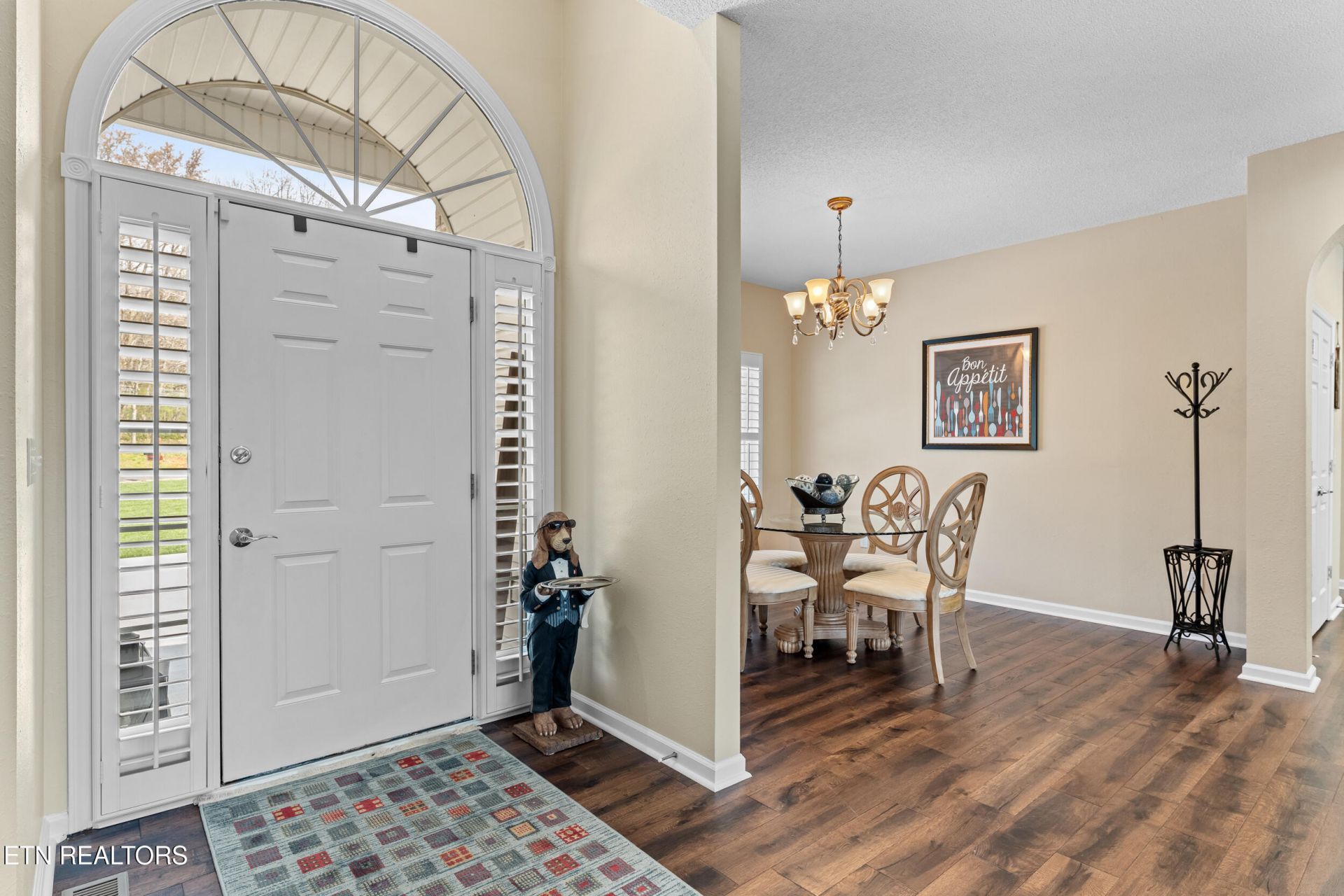 Welcome to 125 Eladi Trail, located in the highly desirable, Golf Cart-Friendly Lake and Golfing Community of Kahite, part of Tellico Village, set along the shores of Tellico Lake. This beautifully maintained home offers 4,657 square feet of heated and cooled living space with four bedrooms, three full baths, and one half bath, thoughtfully designed for both everyday comfort and effortless entertaining. Wood plantation shutters throughout both levels add character, while the main level offers 2,540 square feet of engineered hardwood flooring and an inviting, well-planned layout.The entry foyer makes a warm first impression with an elegant door flanked by sidelights, plantation shutters, and an arched transom above. Just beyond, the spacious great room opens up with an oversized wall of windows that fills the space with natural light and offers a partial view of the lake, especially during the off-season. A formal dining area with a triple window and hanging light fixture sits nearby, perfect for hosting gatherings. The private office features glass-pane double doors, a triple window, and its own ceiling fan, creating a bright and functional workspace.One of the standout features of the home is the large four-season sunroom added in 2020. Designed to be enjoyed year-round, it features a tongue-and-groove wood ceiling, expansive windows, its own split HVAC system, and direct access from both the great room and kitchen. The kitchen itself is beautifully updated with custom cabinetry featuring soft-close doors and drawers, upgraded granite countertops, a porcelain Kohler farm sink, tiled backsplash, and a full suite of stainless appliances. The adjoining breakfast area offers a cozy spot for casual dining with easy access to the sunroom.The primary suite on the main level is spacious and inviting, with large windows capturing peaceful lake views and a well-designed en suite featuring travertine tile, custom cabinetry, a jetted tub, a walk-in shower with seating, and even a heated towel holder. Separate his and hers areas provide added convenience, including dual closets and a private half bath space. A well-equipped laundry room with custom cabinetry, folding station, sink, and storage connects directly to the three-car garage, which features insulated doors and an epoxy-coated floor.Also on the main level is a guest suite with a large bedroom, walk-in closet, and a beautifully appointed bath with travertine tile and a walk-in shower.The walk-out basement level offers exceptional flexibility and functions as a complete in-law or guest suite, with potential for rental or Airbnb income. This level features wood-look tile flooring throughout, a large living area with a wall of windows and French doors leading to the covered patio, and a full kitchen added in 2025 with granite countertops, stainless appliances, and a center island. Additional spaces include a guest bedroom, full bath, a second primary suite with walk-in closet and sitting area, and a HUGE unfinished workshop or storage area.Outside, the home is equally impressive with beautifully landscaped grounds, an oversized concrete driveway, and a combination of brick and vinyl siding accented by shutters. The covered front porch offers a welcoming entry, while the backyard is designed for relaxation and entertaining with a large covered stamped concrete patio, complete with lighting and ceiling fan, and a pergola with stone columns.Since 2018, the owners have made extensive upgrades including a new HVAC system, new water heater, upgrade