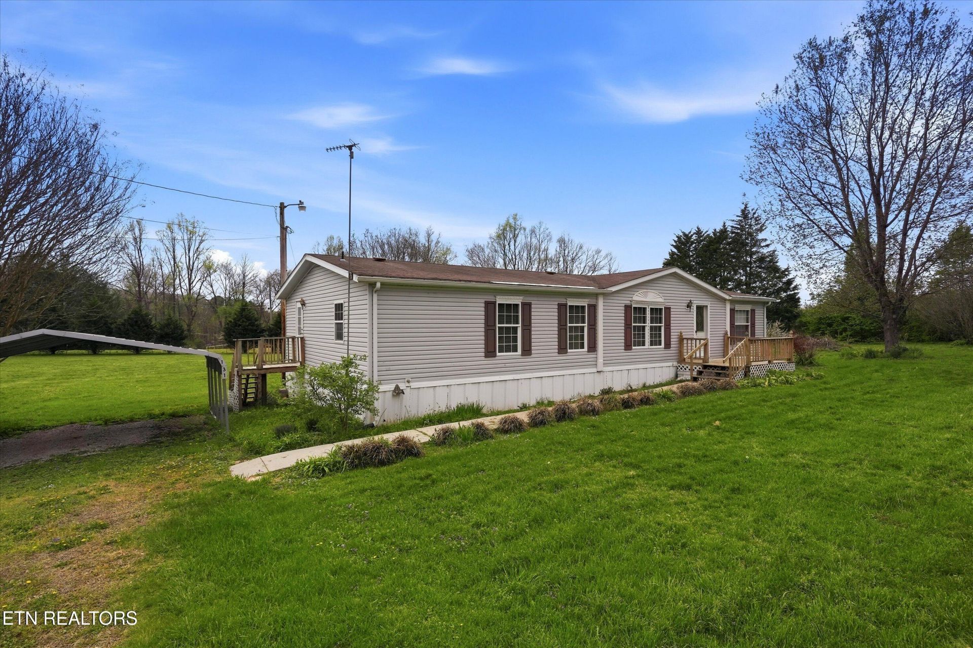Look no further for the country setting you have been waiting for. This home sits on 1.69 +/- acres and includes two carports and shed. There is plenty of space in this mobile home, it is 2 bedroom 2 bath with an extra room that could be used as an office or craft room and has a closet. The living room is open and kitchen offers an island and breakfast bar with a separate eating area. The primary bedrooms has a whirlpool tub. There is washer/dryer hookup. Outside you will find the back porch to enjoy morning coffee with a view of our beautiful Tennessee scenery. This home is being sold ''As Is'' .
