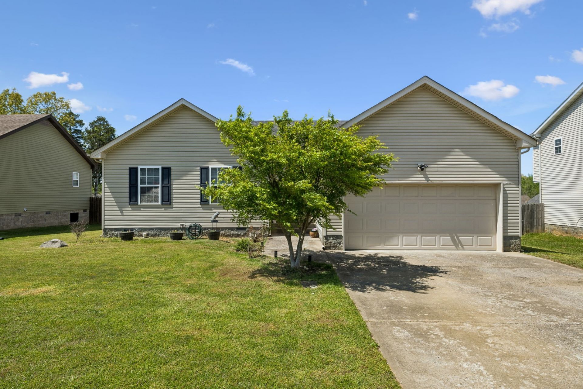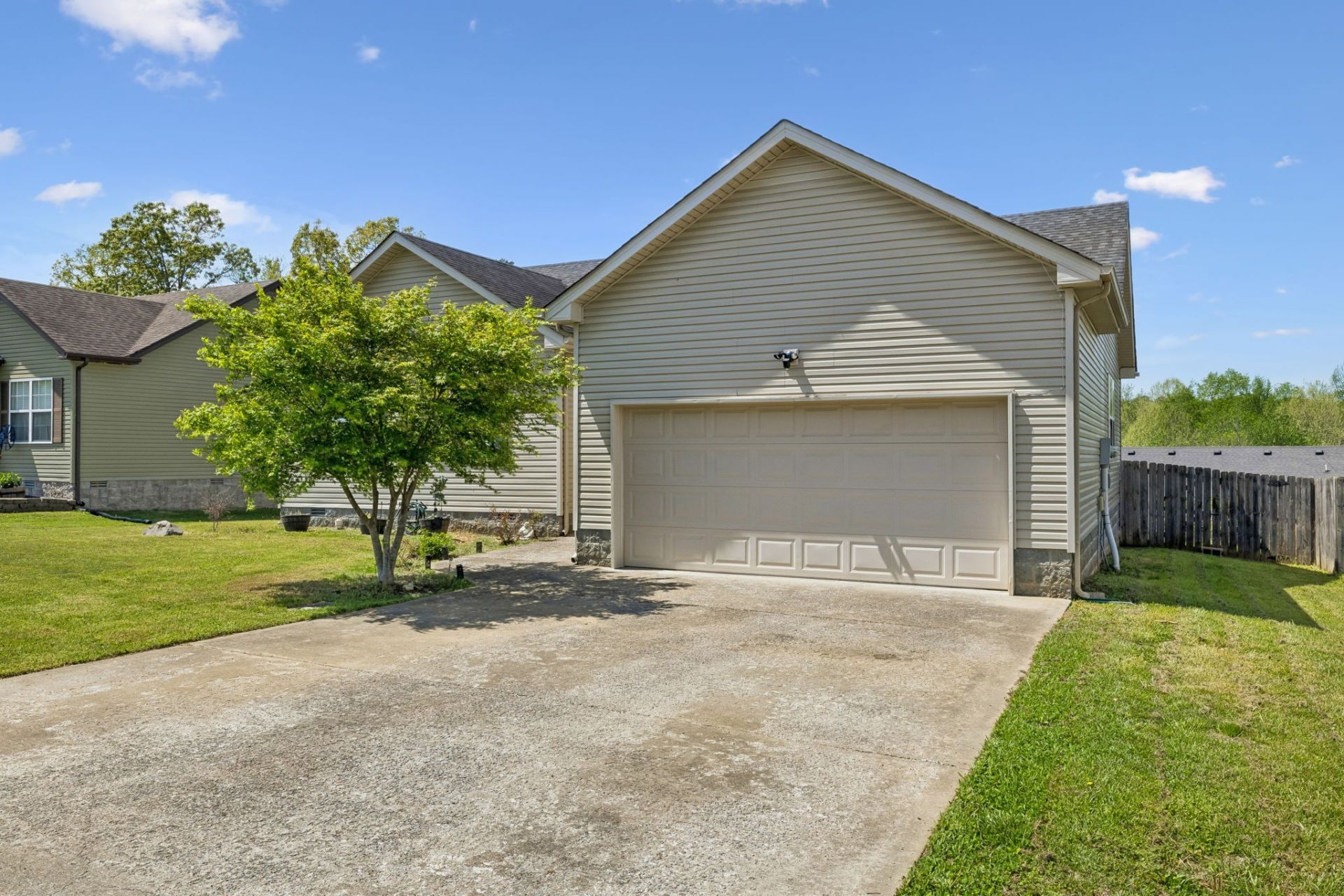 Welcome home to 1388 Constitution Dr. in Clarksville! This charming one-level residence offers the perfect blend of comfort, convenience, and style, all nestled in the desirable Liberty Park neighborhood.Step inside to an open and airy living space featuring soaring ceilings and a cozy fireplace-perfect for relaxing or entertaining. With 3 bedrooms and 2 full bathrooms across 1,398 square feet, this home is thoughtfully designed for easy living.The spacious primary suite provides a private retreat, complete with an en-suite bathroom featuring a separate tub and shower, as well as a generous walk-in closet. Two additional bedrooms offer flexibility for family, guests, a home office, or hobbies.Enjoy outdoor living on the back deck overlooking a fenced backyard-ideal for gatherings, pets, or simply unwinding in your own private space. An attached 2-car garage adds convenience and extra storage.Located in the Liberty Park community, residents enjoy access to neighborhood amenities including a playground, swingsets, and a basketball court. Plus, you'll love the easy access to interstates, making commuting a breeze, along with close proximity to shopping, dining, and everything Clarksville has to offer.Don't miss your chance to own this inviting, move-in-ready home in a fantastic location!