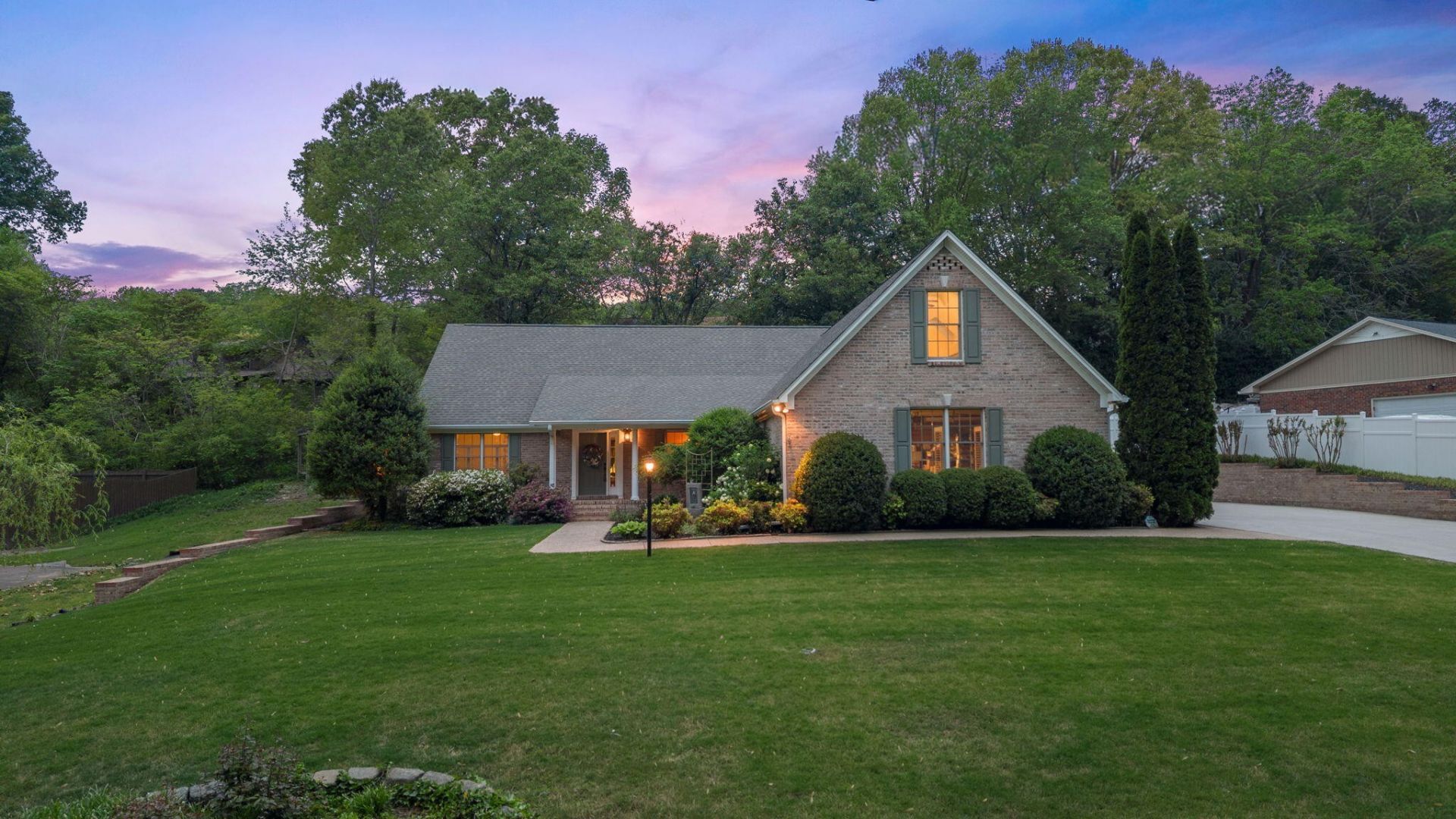 *PRICE IMPROVEMENT* Welcome to this exquisite, all-brick, custom-built ranch nestled in a highly sought-after, well-established neighborhood. From the moment you arrive, the professionally manicured landscaping and convenient sprinkler system deliver undeniable curb appeal from the charming covered front porch.Step inside the beautiful entry featuring gorgeous new LVP flooring that opens directly into the generous oversized living room, highlighted by vaulted ceilings. Added luxury details include Bose surround sound, crown molding throughout, and elegant plantation style shutters. Comfort is guaranteed with two separate HVAC units for efficient climate control. This luxurious single-level living features a desirable three-bedroom, two-bath split floor plan, offering privacy and space. Work from home easily in the dedicated office, then unwind in the separate den area featuring a cozy gas fireplace--the perfect spot for relaxation. The home features a large primary suite complete with a beautiful en-suite bathroom and a nice walk-in closet. The culinary heart of the home is the dream kitchen! It boasts a stunning aesthetic with painted solid cherry cabinetry, a beautiful custom backsplash, exquisite Dekton countertops, and a luxurious double farmhouse sink. It includes all newer, high-end stainless steel appliances, featuring a gas range and a counter-depth refrigerator, plus bar seating, a breakfast nook, and a separate pantry. The home offers tons of storage and double closets throughout, plus a nice-sized laundry room(washer and dryer convey!) The opposite side of the home, offers another comfortable bedroom and full size bath with tile and a double vanity. The second spacious primary bedroom features, load of closet space, a tranquil walk-out screened porch, leading to a private, beautifully landscaped backyard patio complete with a built-in natural gas grill, perfect for entertaining and a small storage shed.