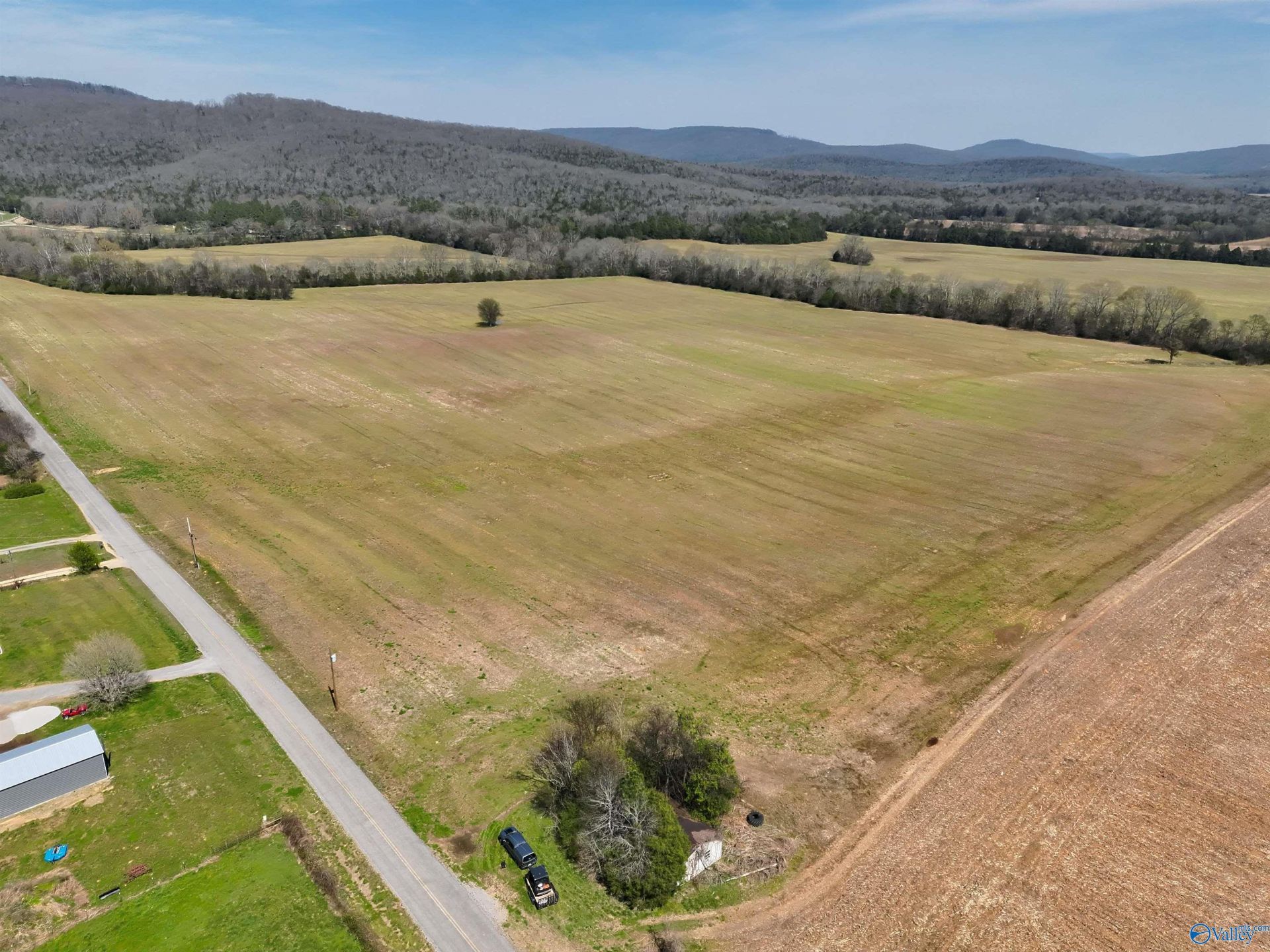 Located west of Scottsboro in the Larkinsville community, this 160± acre Jackson County tract offers productive farmland, recreational appeal, and strong accessibility. Approximately 120± acres are in active row-crop production, with about ½ mile of paved frontage on Blue Springs Cove Road and utilities available along the road. Terrain is mostly level to gently rolling, with a year-round stream through the center and a small hardwood/cedar stand for wildlife cover. Located 2.7 miles from North Sauty Waterfowl Refuge, the property also supports deer and turkey, making it ideal for farming, hunting, or a rural homesite.