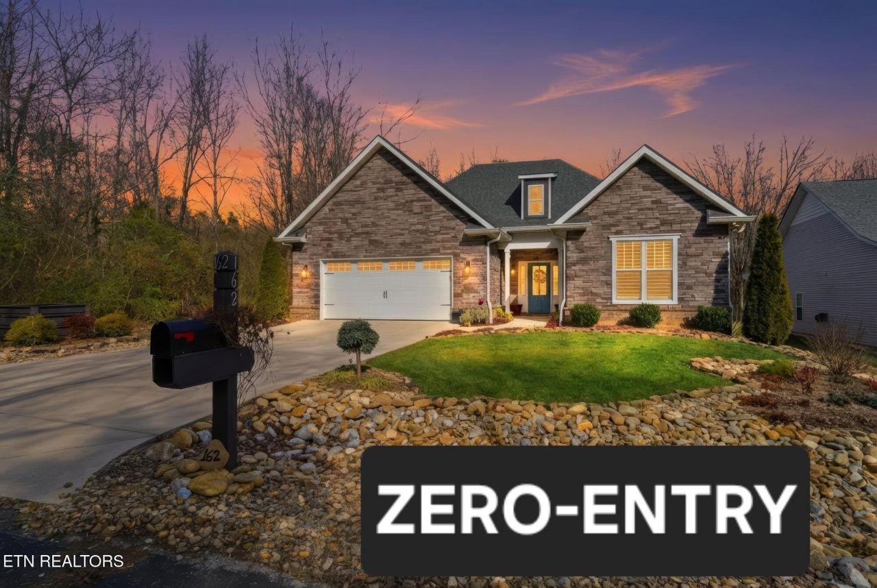 ZERO-ENTRY. Better than new and truly turnkey, this exceptional one-level, pet-friendly home with a flat driveway and distinctive design offers comfort, style, and thoughtful upgrades throughout. See list in documents. From the moment you arrive, the charming stacked-stone exterior creates inviting curb appeal, complemented by a colorful landscaped entry that is especially stunning when in bloom. Inside, the home immediately feels warm and welcoming, with a cozy, practical layout designed for everyday comfort and easy living. Hardwood flooring runs through main areas, and four-inch plantation shutters are already installed in every room, adding elegance, privacy, and excellent light control while saving the new owner considerable expense. The spacious Great Room is the heart of the home, featuring a striking wood-molding tray ceiling that is eye-catching from the open, homey sitting area anchored by a recently updated gas fireplace. A swiveling & lowering TV mount is already in place for optimal viewing comfort. The chef-inspired kitchen is both beautiful and functional, showcasing SS appliances, timeless white shaker cabinetry, elegant granite countertops, and a large island w endless storage, while a spacious walk-in pantry w custom shelving provides exceptional organization. The home offers 3 bedrooms and 3.5 bathrooms, plus a versatile bonus room upstairs. The primary suite is a true retreat, highlighted by a tray ceiling and a spa-like bathroom w double vanities, a large walk-in glass shower w custom tile work, and a generously sized walk-in closet w custom built-ins. Oak stairs lead to the fully finished upper level, where the bonus room or optional 4th bedroom includes its own full bathroom. This flexible space is ideal for a guest suite, live-in helper, media room, home gym, crafting space, or private retreat, allowing the home to adapt beautifully to changing lifestyles over time. The oversized two-car garage offers easily accessible extra storage through a pull-down attic ladder. A private mudroom, conveniently located by the garage, includes a built-in bench and cabinetry for added convenience. An energy-efficient dog door is already installed, designed to prevent heat or air loss while keeping outdoor temperatures from entering, and includes a locking panel for security. A whole-house security system is also in place with no monthly monitoring cost. Outdoor living is just as impressive. The mostly XERISCAPED yard keeps maintenance and water bills low, while the fully wrought-iron fenced backyard offers exceptional privacy with mature evergreen trees and no neighbors behind. Several thoughtfully designed flower beds enhance the space, including perennial flowers perfect for cutting and bringing indoors and ornamental grasses known to help dogs with upset stomachs. A deck and walkway were installed just one year ago and left unpainted to allow the wood to properly cure, giving the new owner the choice to paint, stain or enjoy the natural finish. A convenient grill corner makes outdoor cooking simple and enjoyable, perfectly supporting indoor-outdoor living. Located in one of Tellico Village's most desirable walkable neighborhoods, the setting is fairly level, making it ideal for daily walks or dog walking without the steep hills common in many surrounding areas. The home is perfectly situated between three premier golf courses and Tellico Lake, offering an active, resort-style lifestyle. Residents enjoy access to golf courses, clubhouses, marinas, boat ramps, pools, tennis/ p