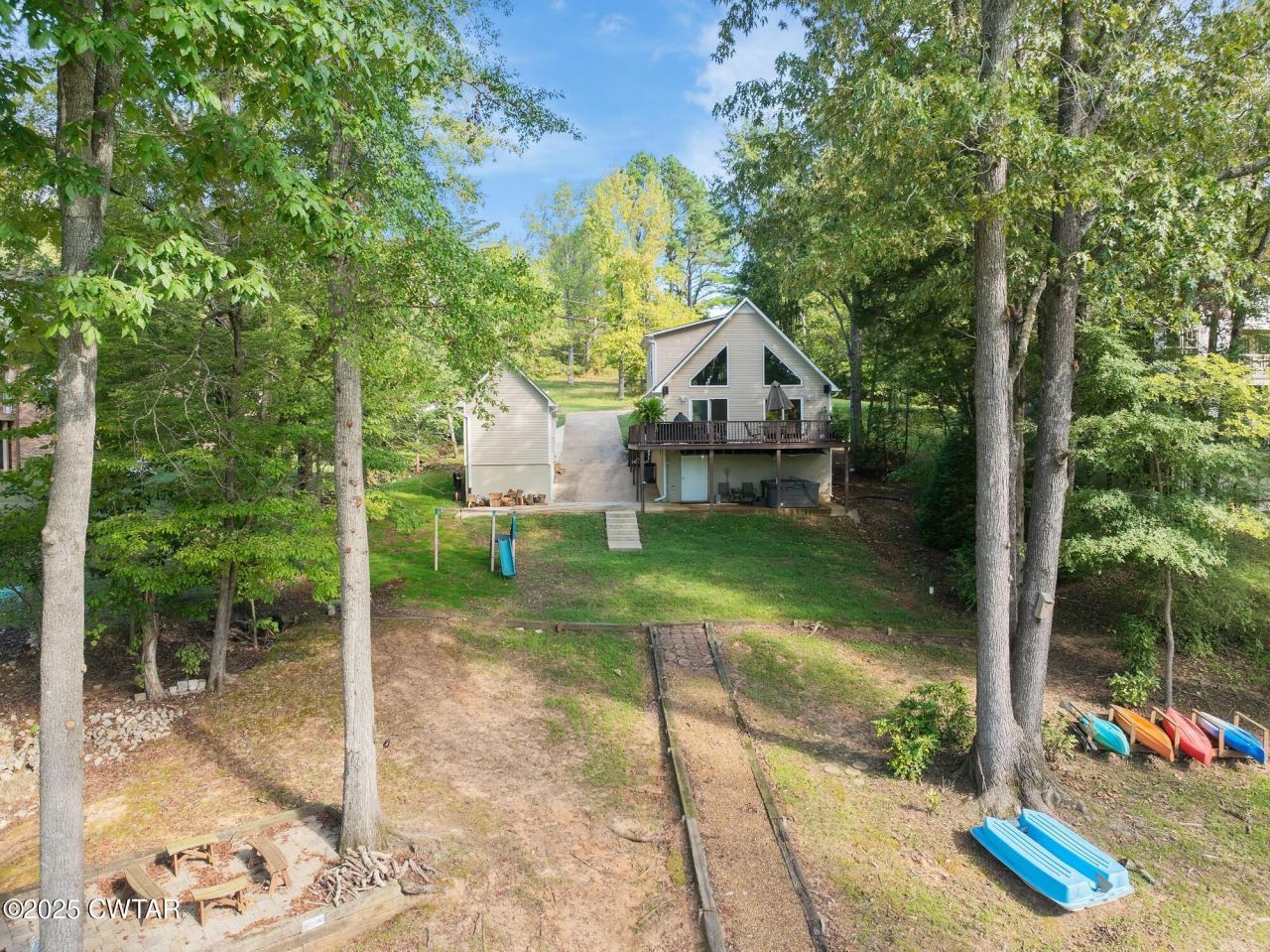 Escape to this beautifully maintained 3-bedroom riverfront home overlooking the scenic Beech River, ideal as a weekend retreat or full-time residence. Enjoy breathtaking water views and colorful sunsets from a dramatic wall of windows or relax on the spacious deck just steps from the shoreline. Walk down to the water's edge where your future dock awaits with an existing TVA-issued dock permit already in place. The home features an open-concept living room, casual dining area, and kitchen designed to capture peaceful river and wildlife views. The interior has been well maintained and includes new stainless-steel kitchen appliances, including a gas stove, microwave, and dishwasher. The primary suite and one guest bedroom are located on the main level for convenient living. A spiral staircase leads to a unique upper-level guest retreat with its own full bathroom and attached loft space, ideal for an additional bedroom, office, or creative space. Floor-to-ceiling windows provide beautiful natural light, and all bathrooms feature ceramic tile finishes. Outdoor living includes a private covered patio with hot tub, plus additional storage and access space beneath the home. A newly built detached shop/car storage building offers drywall, insulation, electricity, and a storm room for added peace of mind. Located in a gated river community with access to a community boat launch, residents enjoy boating, fishing, kayaking, and year-round wildlife viewing including deer, ducks, geese, foxes, turtles, and more. Additional features include high-speed internet, Generac generator, and central heat and air. Conveniently located just 1.5 hours from Nashville and 2 hours from Memphis, offering the perfect balance of relaxation and accessibility. Schedule your private showing today and experience Beech River living.