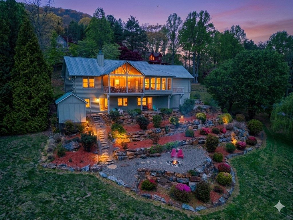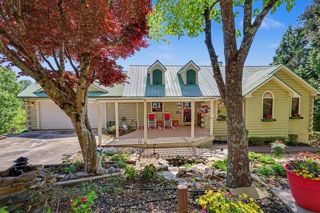 Nestled in one of the area's most sought-after neighborhoods, this stunning 3-bedroom, 2.5-bath home offers the perfect blend of mountain charm and modern comfort, with breathtaking year-round views of Lake Chatuge and the surrounding mountains. Thoughtfully designed for easy main-level living, the home features beautiful pine floors throughout the main floor, with the primary suite, kitchen, and laundry all conveniently located on one level. The spacious primary bedroom boasts an ensuite bath with dual sinks and a walk-in closet. Entertain and unwind in style with a sunroom, screened porch, and grilling deck, or take in the serene sights and sounds of your very own front yard waterfall set amid lush, professionally landscaped grounds. A day-use boat dock with a mowed walking path to the lake makes waterfront living effortless, while a 2-car garage, workshop space on the terrace level, and an exterior storage building provide ample room for vehicles, hobbies, and gear. The home's charming interior features a warm mix of wood and sheetrock finishes that complement its natural surroundings. With paved access and an unbeatable location just minutes from Hayesville, Hiawassee, and Blairsville, you'll enjoy easy access to shopping, grocery stores, boating, and the many beloved attractions this beautiful region has to offer. This is mountain lake living at its finest.