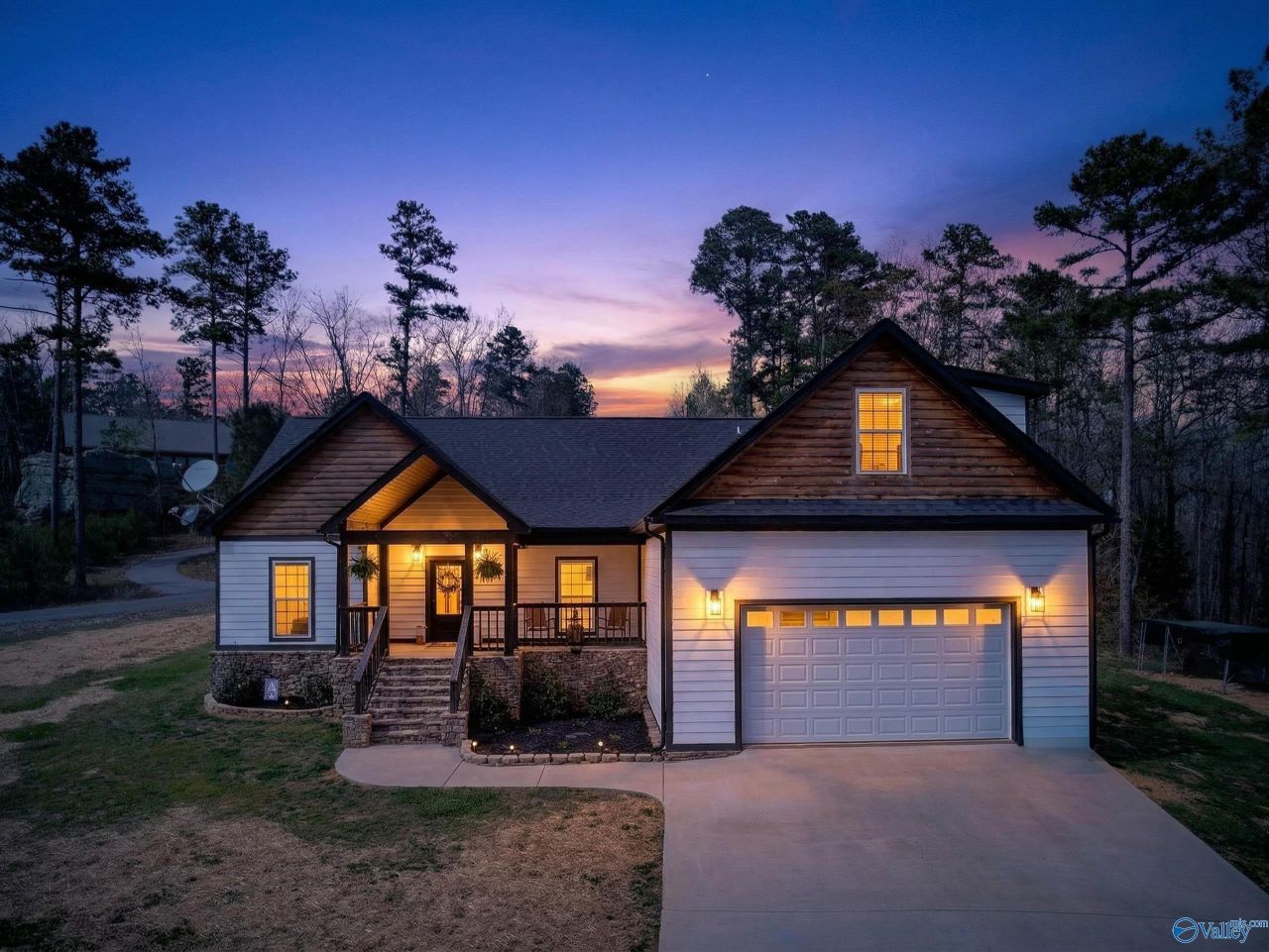Tucked away on a quiet, secluded road, this stunning 2021-built home offers the perfect blend of modern comfort and peaceful living. With seasonal views of Lake Guntersville and nature all around, you'll often spot deer and turkey right from your own yard. Inside, you'll find 10-foot ceilings, LVP flooring, and tile throughout, creating a clean and cohesive feel. The open living space is anchored by a gas log fireplace and flows beautifully into a show-stopping kitchen featuring custom finishes and a large island. The spacious primary suite is a true retreat, complete with a beautifully designed bathroom that feels straight out of a magazine. Come see this beautiful home for yourself!