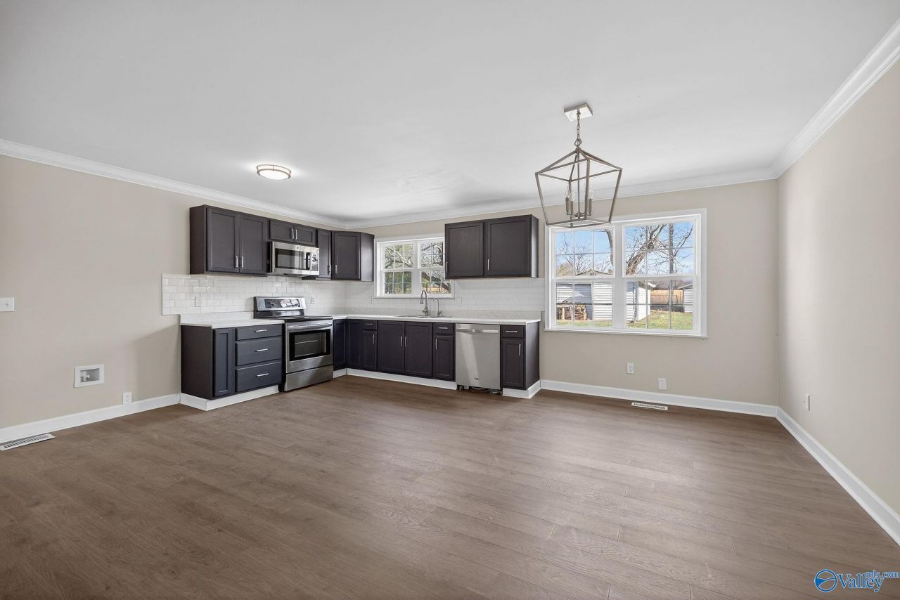 Spacious home with open concept located in the DAR School District. Quiet country setting with two large storage buildings and a fenced area for pets. This home features modern updates, vinyl windows, and a brand-new roof. A bonus room can be used as an office, fourth bedroom, or formal dining. Only a short drive to Huntsville's Redstone Arsenal and Lake Guntersville! Call for a showing today!