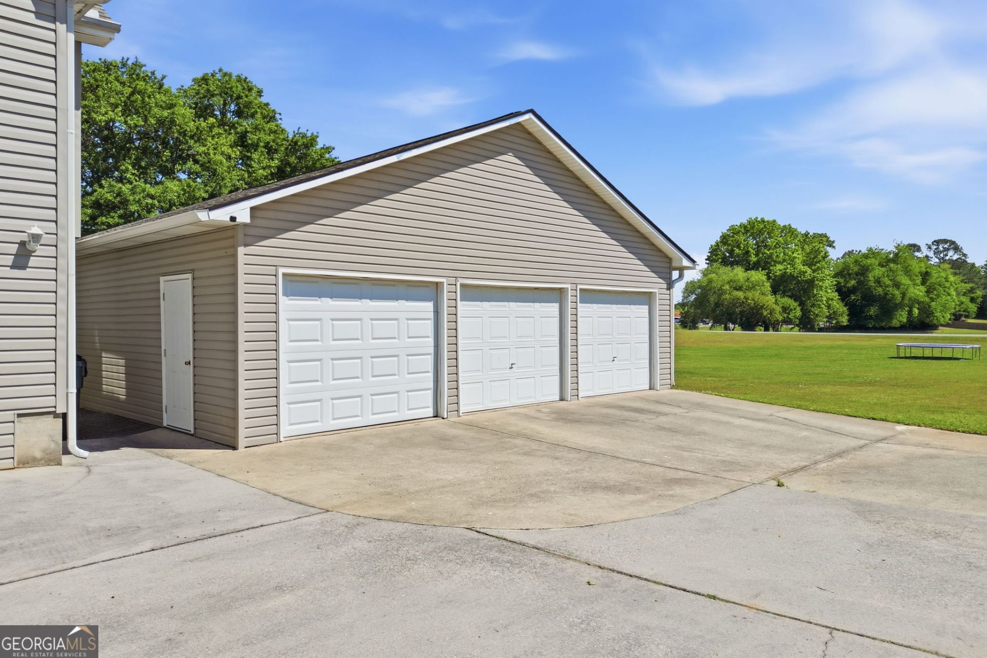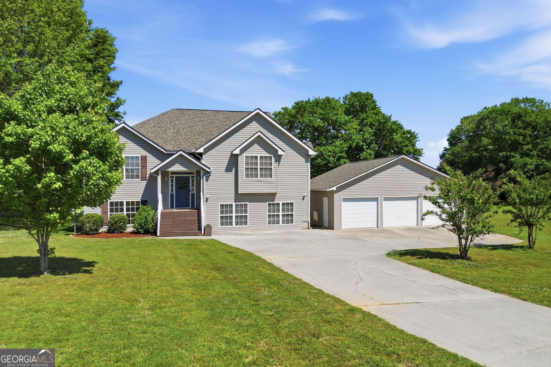 Nestled on nearly an acre in peaceful Rockmart, this welcoming 4-bedroom, 3-bath split-level home delivers the freedom of no HOA, the comfort of generous living areas, and the flexibility of a fully finished terrace level perfect for guests or multigenerational living. Step inside to a bright, welcoming layout where the living room flows into a cheerful eat-in kitchen featuring white cabinets, granite counters, timeless subway tile, a breakfast bar, and a pantry that keeps everything organized. Host holidays or casual dinners in the separate dining room overlooking the big backyard. The large master on main is a true retreat with dual vanities, granite counters, a relaxing soaking tub, and separate tiled shower. Two generously sized secondary bedrooms on the main level share a full bath with granite counters and a shower/tub combo. Downstairs, the terrace level opens up endless possibilities with a huge bedroom, kitchenette, office, and spacious living area-ideal for long term guests, teens, or a private work from home setup. Outside, enjoy room to garden, play, or simply relax. And for hobbyists or car enthusiasts, the detached 3 car garage is a dream come true! If you've been looking for a property that offers space, privacy, and flexibility-all in a peaceful setting without sacrificing convenience-this one checks all the boxes. Welcome home to your own Rockmart retreat!