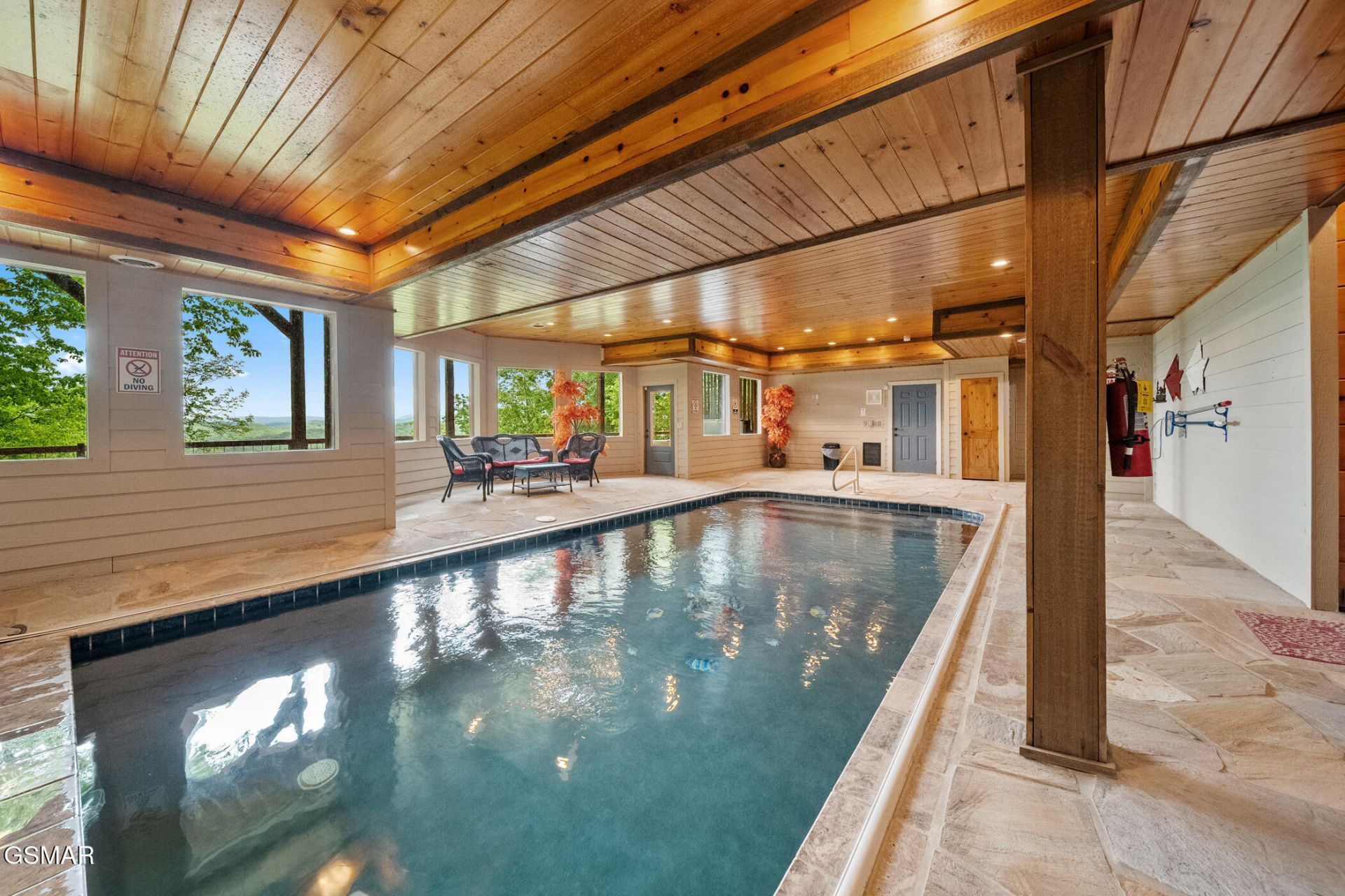 FOR SALE! Mountain Views, Heated Saltwater Pool and MORE! Motivated and flexible sellers on this luxury log cabin offering strong short-term rental potential, located less than 10 minutes from downtown Pigeon Forge. Short-term rentals are allowed, making this a prime Smoky Mountain investment opportunity. This spacious 5-bedroom cabin features 5 full baths and 2 half baths with nearly 4,200 square feet designed to accommodate large groups--ideal for maximizing rental income. The open-concept living area showcases soaring vaulted ceilings, gas fireplaces, and upscale furnishings that guests expect in a high-performing mountain rental. The standout feature is the expansive indoor HEATED SALTWATER pool, complete with flagstone finishes, retractable cover, abundant natural light, and a dedicated climate control system, including a newly installed $7,000 dehumidification system--a major value add for long-term maintenance and guest comfort. Additional features include a metal roof, luxury vinyl plank flooring, updated appliances, jetted tubs, outdoor kitchen with gazebo, and multiple decks with stunning Smoky Mountain views, including a hot tub overlooking the valley. Conveniently located near downtown Pigeon Forge, Dollywood, Gatlinburg, and the Great Smoky Mountain National Park, and situated in the desirable Laurel Branch subdivision where values continue to appreciate, this property offers the ideal combination of location, amenities, and income potential. Drone photography used. Video tour available. Check out the video tour at this link: https://www.youtube.com/embed/iv88BVHddZY