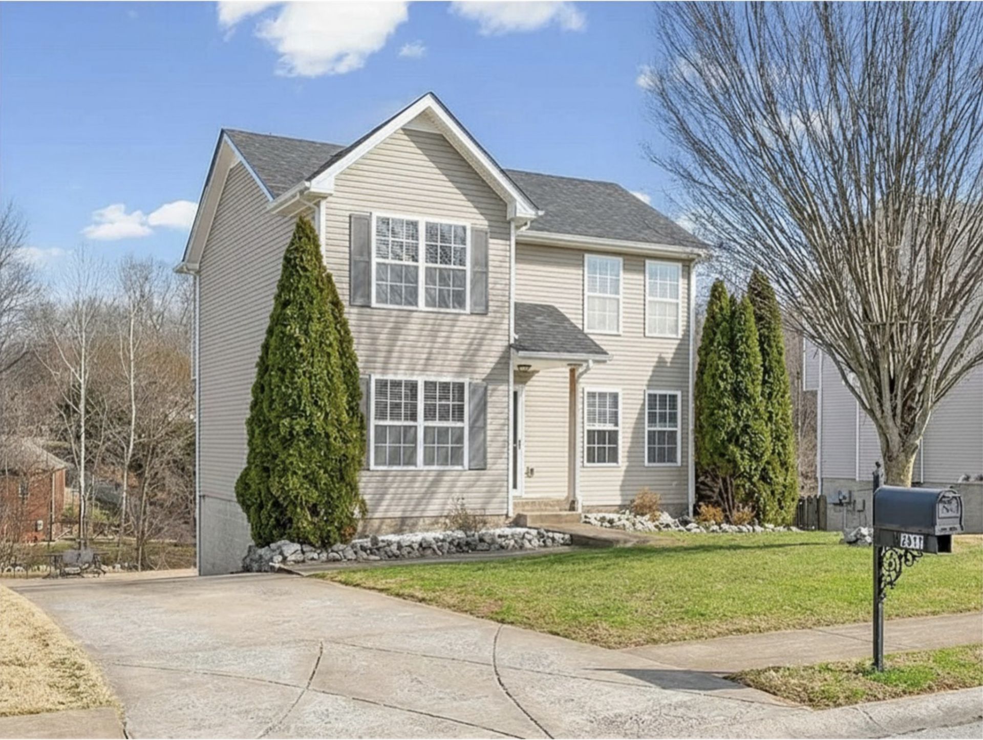 **New Price**This Glenellen Landing home is located on a quiet cul-de-sac with subdivision-wide sidewalks that make walking easy and safe. Just minutes from downtown Clarksville, Fort Campbell, shopping, and restaurants.This clean and well-maintained 3-bedroom, 2.5-bath home offers nearly 2,000 square feet of living space. Bedrooms and the laundry room are conveniently located on the top floor. The finished walkout basement includes a flexible space perfect for a playroom, remote work office, or theater room.Upgrades were designed to simplify daily living, including threshold-free continuous flooring, easy-lift blinds throughout, a deep stainless kitchen sink with optional touch-less faucet, pull-down sprayer, and soap pump, plus a freestanding movable kitchen peninsula bar that adds versatility and extra counter space. New French doors open directly onto a Trex composite deck. A 1-year-old HVAC system, Nest thermostats, adjustable directional air vents, and a 5-year-old roof for comfort and peaceof mind. A smart home security system can be easily activated by the new owner. The backyard features generous flat tiers with a privacy fence on three sides, a large shed.
