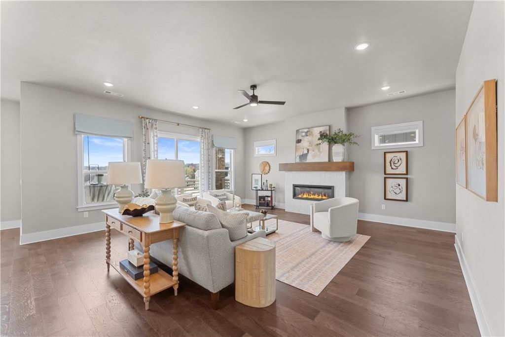 Discover this stunning modern home in the perfect East Fayetteville location?just a short walk to beloved Gulley Park! Kyrie floorplan featuring designer finishes throughout. Enjoy a spacious open floorplan with a large living room, electric fireplace, and beautiful wood flooring. The chef's kitchen boasts 3cm quartz countertops, stainless steel frigidaire professional-grade appliances, custom cabinets to the ceiling with soft close hinges, vented hood, and a walk-in pantry. The luxurious primary suite includes hardwood floors, custom beams, and a spa-like bathroom with walk in tile shower, double sinks and walk in closet. With a formal eat in area, cubbies to keep you organized, large covered balcony, and included blinds and gutters, this home blends comfort, style, and convenience in one unbeatable package. POA maintained lawncare and access to Niokaska Creek Trail from the neighborhood!