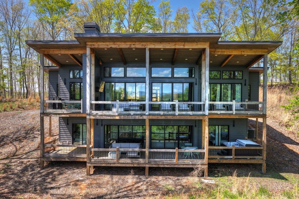 Positioned to capture sweeping year-round mountain views and rolling pasture, 315 Blue Berry Ridge is a striking contemporary chalet that seamlessly blends modern design with the natural beauty of North Georgia. Walls of glass and expansive sliding doors frame the landscape, filling the home with light and opening to a sprawling outdoor living deck anchored by a stone fireplace?designed for effortless indoor-outdoor entertaining. The main level offers a refined open-concept layout with a spacious living room, dining area, and a gourmet kitchen outfitted with stainless steel appliances, custom cabinetry, and a generous pantry. A large laundry and mud room provides functional ease with direct access to the detached, finished two-car garage. The primary suite on this level is a private retreat, complete with a spa-inspired en-suite featuring dual vanities, a walk-in tile shower, and a soaking tub. The terrace level is built for gathering and relaxation, offering a substantial den, game area, and full wet bar, along with two additional luxury bedroom suites for guests. Step outside to the walk-out patio where a hot tub and outdoor game area invite you to unwind beneath the mountain skyline. Offered fully furnished, this property is a proven high-performing short-term rental and an exceptional opportunity as a full-time residence, second home, or investment. Ideally located just minutes from Downtown Blue Ridge, Lake Blue Ridge, and endless hiking and biking trails, this is elevated mountain living at its finest.