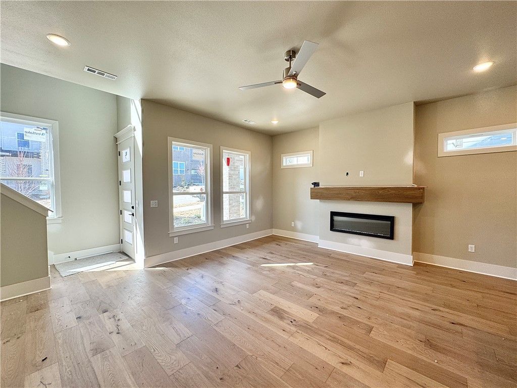 Discover this stunning modern home in the perfect East Fayetteville location?just a short walk to beloved Gulley Park! Ewan floorplan featuring designer finishes throughout! Enjoy a spacious open floorplan with a large living room, electric fireplace with accent wall, and beautiful wood flooring. The chef's kitchen boasts 3cm quartz countertops, stainless steel frigidaire professional-grade appliances, custom cabinets to the ceiling with soft close hinges, vented hood, and a walk-in pantry. The luxurious primary suite includes hardwood floors, custom beams, and a spa-like bathroom with walk in tile shower, soaking tub, double sinks and walk in closet. With a formal dining area with accent wall, loft upstairs for relaxing, cubbies to keep you organized, large covered patio, and included blinds and gutters, this home blends comfort, style, and convenience in one unbeatable package. POA maintained lawncare and access to Niokaska Creek Trail from the neighborhood!