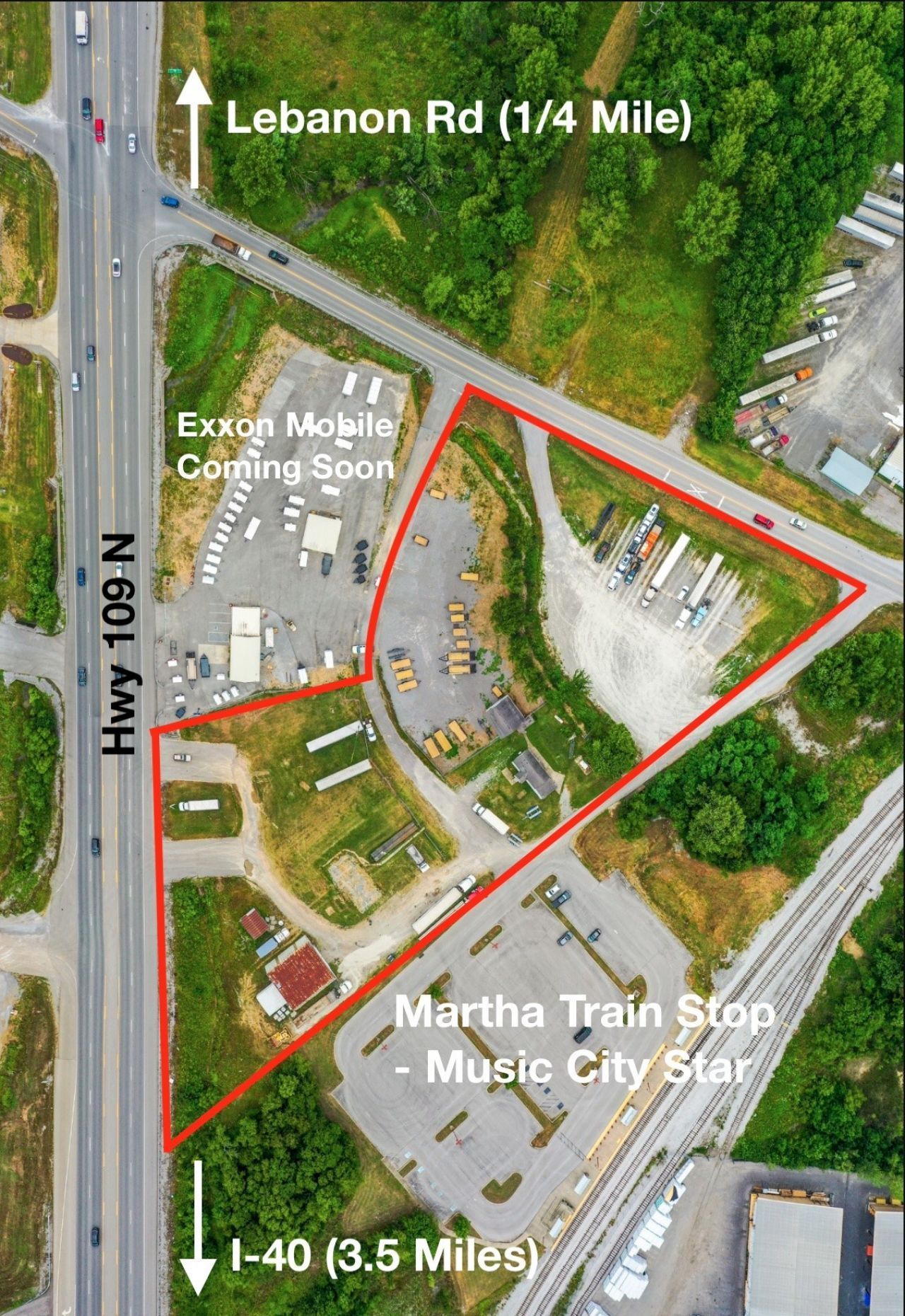 LOCATION, LOCATION, LOCATION!! 2.96 Acres fronting over 1,000 ft on 3 roads, w/ 2 Entrances from Hwy 109! City sewer, water, and electricity on property. Natural gas at RR. Zoned CG commercial. TDOT traffic count 22k+ daily. Approx 3.5 miles from I-40, newly opened Publix Center and 4,000+ new housing units. Road in center is privately owned and can be removed. Next to the only undeveloped train station in Wilson Co. (1.24 AC sold adjacent to this property at corner of Hwy 109 and Powell Grove Rd). So much activity on this highly coveted Hwy 109 corridor between I-40 and Lebanon Rd, recently including the newly Opened Mapco across 109, and Exxon Mobile on adjacent property. Zoned Commercial General, the possibilities are endless!!