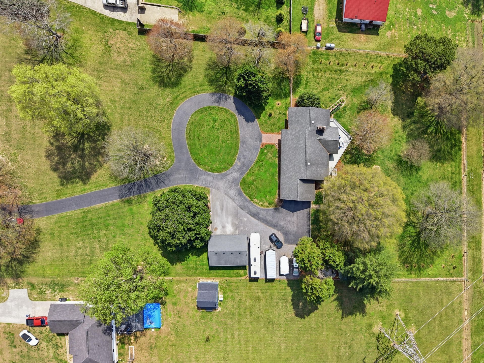 Country living at its best! This beautiful 4-bedroom, 3-bathroom home is situated on two private acres, just minutes from the shops, restaurants and the interstate. The property features a circular driveway with extensive parking for cars, trailers, RVs, a two-car attached garage, and a detached two-car garage with a workshop.Inside, you will find a spacious open floor plan with country views from every window. The great room features vaulted ceilings with wood beams, built-in shelving, floor-to-ceiling windows, and a stunning stone gas-log fireplace. The dining room opens directly to the kitchen, making it an ideal space for entertaining.Property Highlights:- Main Floor: Master suite and laundry for convenient living.- Lower Level: Three large bedrooms, a spacious great room with a fireplace, a large storage room, and a generous Mother-in-Law suite with a sitting area and bathroom access.- Outdoor Living: Fenced backyard with mature trees, a large deck with a Sunsetter retractable awning, installed deck lighting, a ceiling fan, and a basketball court.- Garage & Storage: Detached two-car garage equipped with a mini-split HVAC, 70-amp service, RV/welder plugs, and a workshop. Two additional sheds feature electricity and permanent storage racks.Recent Upgrades and Features:- Interior: New Acacia wood flooring on the first floor, new Thomasville kitchen cabinets, under-cabinet lighting, and new double wall oven and dishwasher.- Renovations: Removed popcorn ceilings, updated plumbing venting to code, and replaced all electrical switches, outlets, door knobs, and hinges throughout the house.- Lighting: New fixtures throughout, including recessed can lighting in the kitchen, great room, and basement.- Bathrooms: New quiet exhaust fans with heat options and a new vanity, sink, and faucet in the downstairs bathroom.- Systems: New water heater (2025), 400-amp service in the main house, two attic fans. - Exterior: Freshly painted with faux wood accents, stained deck, and a 60x75 parking area reinforced with commercial fabric and 144,000 lbs of rock.This home is move-in ready and perfectly equipped for both relaxation and hobbyists alike.