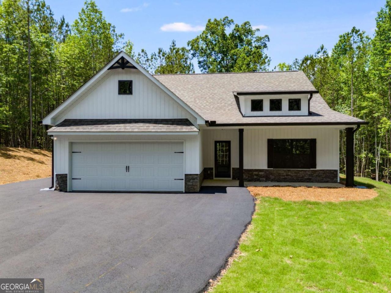 Construction is just underway! Don't miss your chance to own a spacious ranch on 3 private acres with no HOA and plenty of room to enjoy. Seize this opportunity to own your own private 3-acre lot! This stunning, new, step-less, craftsman-style ranch offers modern country living at its BEST! The open floor plan features a vaulted family room highlighted by a custom shiplap fireplace. The gourmet kitchen is designed for entertaining and showcases an oversized custom island, a charming farmhouse sink, stainless steel appliances, upgraded soft-close shaker cabinetry, granite countertops, and a huge pantry. A separate laundry room adds everyday convenience and functionality. The primary suite offers a luxurious en-suite bath with a breathtaking tile shower featuring a custom glass door, along with a spacious walk-in closet. Two generously sized secondary bedrooms offer ample storage space with large closets and are complemented by a beautifully appointed full bathroom. Every detail throughout the home exudes luxury and thoughtful design, creating a space that is both inviting and practical. Relax on the picturesque front porch while enjoying your private, tree-lined view. The oversized covered back porch is ideal for both relaxing and entertaining and features a custom wood-burning outdoor fireplace. This gorgeous modern farmhouse design will include upgraded, striking BLACK EXTERIOR windows. Standard features include durable exterior vinyl siding, luxury LVP flooring in the kitchen, living room, entry, and baths, plush carpeting in the bedrooms, and high-quality finishes throughout. Enjoy the freedom of a private lot with no HOA restrictions, offering the perfect blend of tranquility and convenience. Not quite the right floor plan or lot? We have additional lots and floor plans available. Please note that the interior & exterior photos are not of the actual home but are representative of this plan. (Lot and drone images depict the actual lot.) Conveniently located just minutes from Cedartown, Rockmart, Aragon, and Rome. Don't miss this rare opportunity to create your dream home in a tranquil setting.