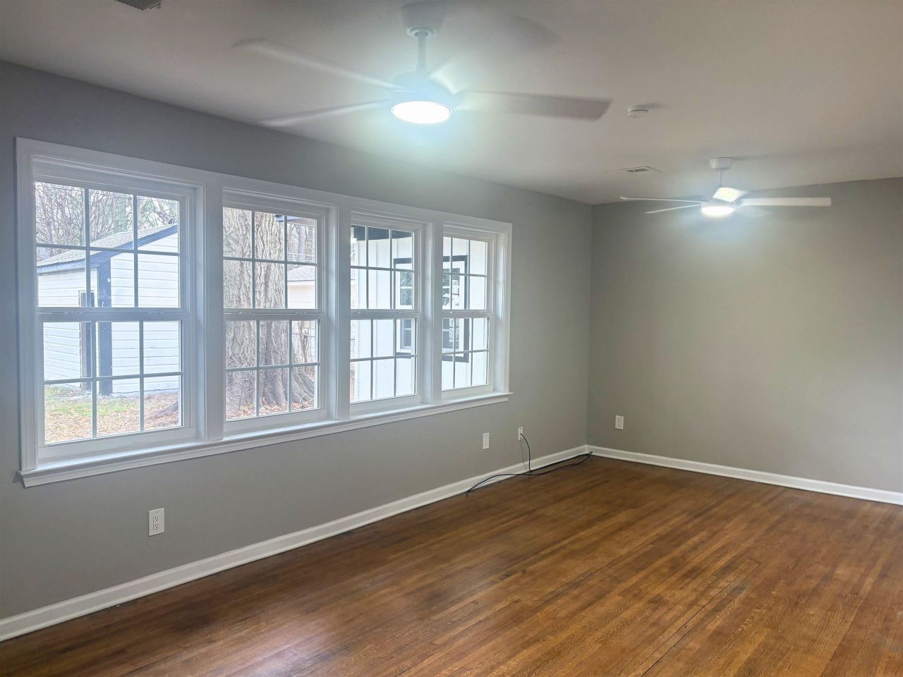 Completely refreshed and move-in ready! This beautifully updated home offers a bright, neutral interior with refinished hardwood floors, updated lighting, and fresh paint throughout. The kitchen features crisp white cabinetry, updated appliances, and ample counter space for everyday living and entertaining. You'll love the modernized bathroom with classic subway tile shower, designer niche detail, and updated fixtures. A spacious living area filled with natural light creates the perfect gathering space, while additional flex rooms provide options for a home office, guest space, or playroom. Outside, enjoy a large backyard with mature trees and detached storage building?ideal for hobbies, tools, or extra storage. Convenient location with easy access to schools, shopping, and dining. Clean lines. Thoughtful updates. Ready for its next owner. New paint, new windows, new roof on shed.