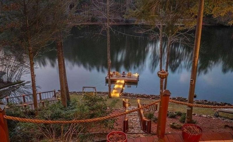 Welcome home to this beautiful oasis surrounded by the North GA mountains and panoramic view of a beautiful private lake shared in the Briar Cove community. Have you ever dreamt of owning an authentic log, mountain lodge? Well look no further! This five bedroom three full bath newly renovated and professionally designed home has every luxury one could hope for. The home boast five fireplaces, a spring fed pond with waterfall adjacent to the home, panoramic view from several multi level balconies and covered porches that wrap around the home, all while encompassing a fabulous outdoor kitchen with a stylish Viking built in grill, refrigerator, wide counters and storage cabinets. Enjoy gourmet dinners from the beautifully designed open concept kitchen with hand honed leather granite counter tops, high end appliances and a generous island to entertain and relax in this well appointed kitchen. Gaze up at the grand vaulted, tongue and groove ceiling and to the one of a kind, hand crafted stair rail. The beautiful loft overlooks the two story living room/kitchen area to which it invites warmth from all around. The terrace level offers another master suite and grand master bath with jetted soaking tub. Full entertaining/gaming area. Brand new seven person hot tub overlooking the lake. Once wander outdoors, follow the beautifully landscaped path to your private dock. Ample in size to sun bathe, fish, launch your kayak, pedal boat, canoe, paddle board, or simply dive in and float the pristine lake. This home is a gem, a true one of a kind. Family and friends would love spending time year around, relaxing at your tranquil home on the 10 acre private stocked lake. Short term rental is allowed. In the first year, home did over $100K in rental. This premier property would make not only a wonderful home, but an excellent vacation property investment as well! This home has so much to offer and will not last.