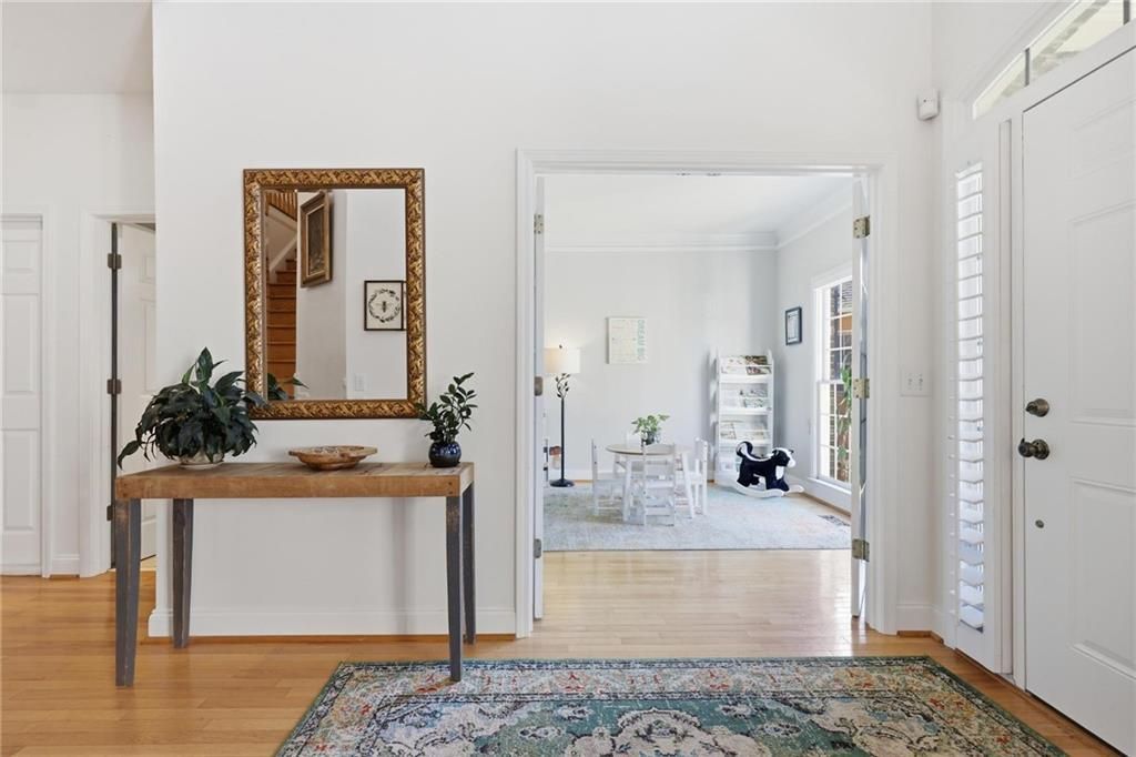 Beautifully updated cul de sac home in a highly sought after swim and tennis community offering five bedrooms and four full baths with a bright and functional open floor plan and a walk out basement. Hardwood floors run throughout the main and upper levels, while the spacious kitchen features a granite island, stainless steel appliances and a pantry and opens seamlessly to the main living areas, making it ideal for both everyday living and entertaining. A large deck overlooks the level fenced backyard and provides the perfect setting for outdoor gatherings. The two story family room with a stone fireplace and plantation shutters creates a warm and inviting atmosphere, and the oversized primary suite offers tray ceilings, a generous walk in closet and a well appointed bath with double vanities, a soaking tub and separate shower. The main level also includes a formal dining room, a flexible living room or office and a private guest suite with a full bath, while upstairs features two secondary bedrooms connected by a Jack and Jill bath along with an additional bedroom with its own private bath. The unfinished basement offers ample storage or the opportunity for future expansion, all set within a community that features swim and tennis, a lake, walking trails and a playground just minutes from the Battery, top dining and shopping and easy access to 285.