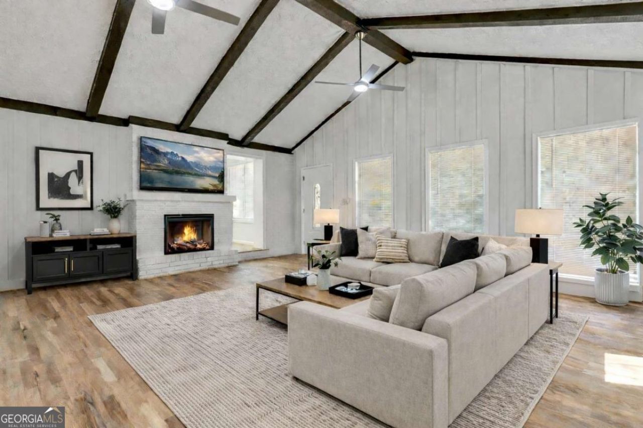 Fully Renovated 3 Bed / 2 Bath + Bonus Room Private Outdoor Living! Completely and beautifully updated, this home offers style, comfort, and peace of mind with major improvements including a new roof, serviced septic system, fully renovated kitchen and bathrooms and new windows. Nearly everything has been updated - making this a truly move-in ready home designed for lasting value. The stunning great room showcases a dramatic beamed ceiling and cozy fireplace - creating a warm, inviting space ideal for both everyday living and entertaining. Rich hardwood floors run throughout, adding to the home's elevated and polished feel. The spacious primary suite is a true retreat, featuring private access to both the front and rear of the home, a covered porch, expansive walk-in closet, and a well-appointed bath with double vanities. A versatile bonus room provides the ideal flex space, home office, playroom, or additional living area. Outdoor living shines with a fully fenced backyard, privacy fencing, and a covered patio designed for entertaining or quiet enjoyment. Covered parking, dedicated RV/camper parking, and a storage shed provide added versatility and convenience. Move-in ready and thoughtfully designed - this is one you don't want to miss.