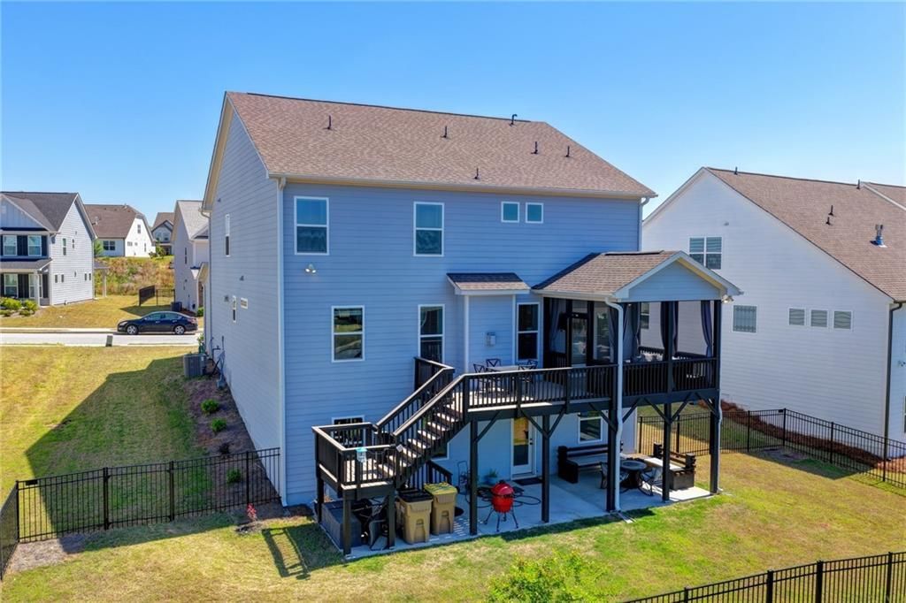Seller is offering $10,000 toward closing costs or an interest rate buy-down with an acceptable offer, don't miss this incredible opportunity to lower your monthly payment or reduce your out-of-pocket expenses! Practically new and barely lived in, this beautifully upgraded home offers exceptional style, comfort, and functionality throughout. Step through the foyer into a stunning dining room on the left, enhanced by elegant wood accent molding that adds warmth and sophistication. Continue down the hall to a chef's dream kitchen featuring crisp white cabinetry, a large center island, a five-burner gas cooktop, quartz countertops, and a designer tiled backsplash. The kitchen also includes a spacious walk-in pantry, along with a separate butler's pantry, perfect for meal prep and effortless entertaining. The kitchen flows seamlessly into the family room, creating an ideal open-concept layout for everyday living and gatherings. At the rear of the home, enjoy a screened-in porch and adjacent deck, perfect for grilling while overlooking the flat, fully fenced backyard. Upstairs, the owner's suite offers a private retreat with a spacious en-suite bath and a walk-in closet that conveniently connects to the upstairs laundry room. A versatile loft, currently used as a media room, plus three additional bedrooms complete the upper level. There is absolutely no carpet in the home, both the main level and upstairs feature luxury vinyl plank flooring throughout. Additional upgrades include a 220-volt EV charging line in the garage and a dedicated subpanel for the basement, providing flexibility for future expansion or finishing the terrace level. Twin Lakes is a thoughtfully planned community featuring a private lake, two swimming pools, a clubhouse, fitness center, playground, cabana, dog park, and scenic walking trails. Ideally located less than five miles from I-85, residents enjoy convenient access to shopping and dining in Braselton, Buford, and Mall of Georgia. Best deal in the neighborhood, featuring a full daylight basement and the benefit of original owner upgrades throughout!