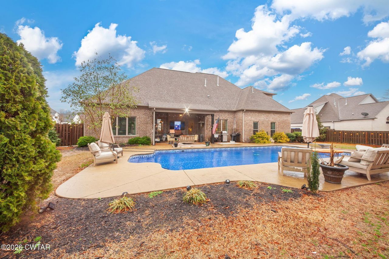 Welcome Home! Located in a desirable gated subdivision in Jackson, TN, this stunning 5-bedroom, 3.5-bath home offers approximately 3,500 square feet of beautifully designed living space. The open floor plan features soaring 10-foot ceilings and abundant natural light, creating a spacious and inviting atmosphere throughout. The elite kitchen is a true centerpiece, showcasing custom white cabinetry that extends to the ceiling, stainless steel appliances, a stylish backsplash, and a gas cooktop?perfect for both everyday living and entertaining. The generous layout flows seamlessly into the main living areas, ideal for gatherings and family time. Step outside to your private backyard retreat featuring a beautiful inground pool, perfect for relaxing or hosting guests. Additional highlights include a 3-car garage and well-appointed bedrooms with plenty of space for family and guests. This exceptional home combines luxury, functionality, and privacy in one of Jackson's premier gated communities. For more information call the Haltom Home Team 731-984-2200 or visit our website at www.HaltomHomeTeam.com!