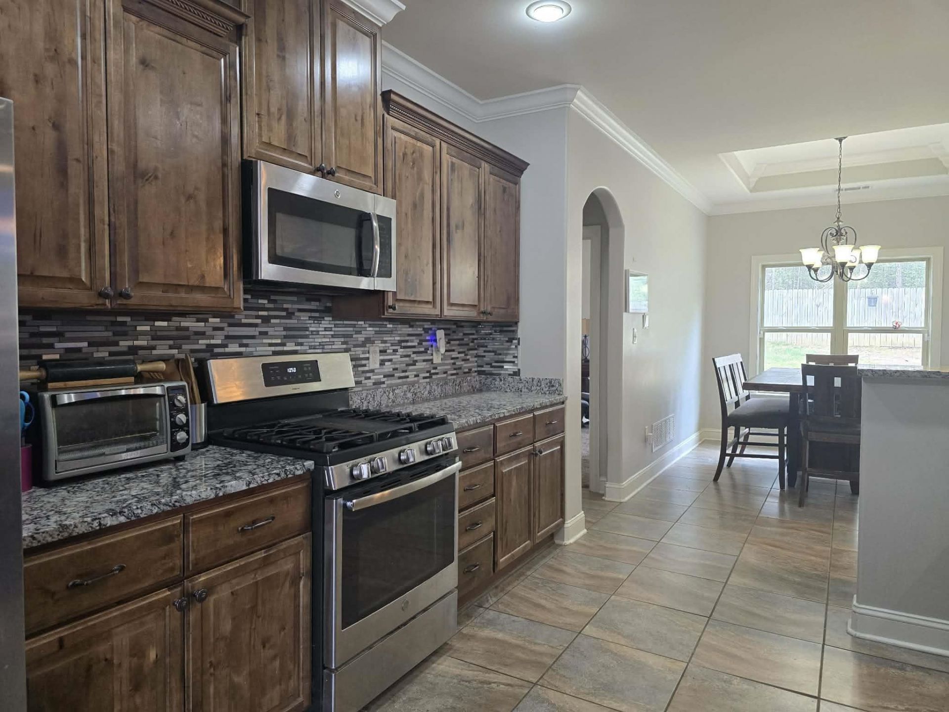 This stunning 5- bedroom residence offers 4 on a single level, 3 baths, a bonus room, formal dining room, and a open floor plan. The kitchen seamlessly transitions into the breakfast room and greatroom, featuring custom built - ins, Additional highlights include a private fenced backyard, side load garage, and a desirable location near schools, creating an idea environment for families to thrive.