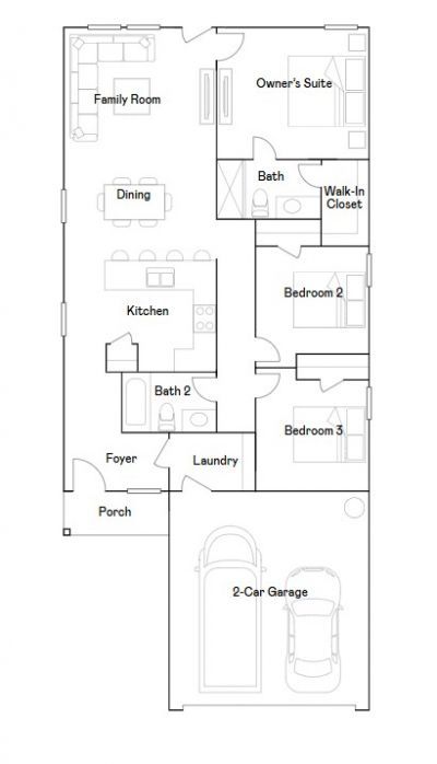 The Oakridge showcases elegant single-level living with a thoughtfully designed open-concept layout that seamlessly connects the kitchen, dining area, and family room?creating a sophisticated yet welcoming space for both everyday comfort and effortless entertaining. Privately tucked into a quiet rear corner, the owner's suite serves as a tranquil retreat, complete with a beautifully appointed en-suite bathroom and a spacious walk-in closet. Two well-placed secondary bedrooms are situated along the side of the home, offering flexibility and privacy for household members or overnight guests while maintaining a harmonious flow throughout the design.