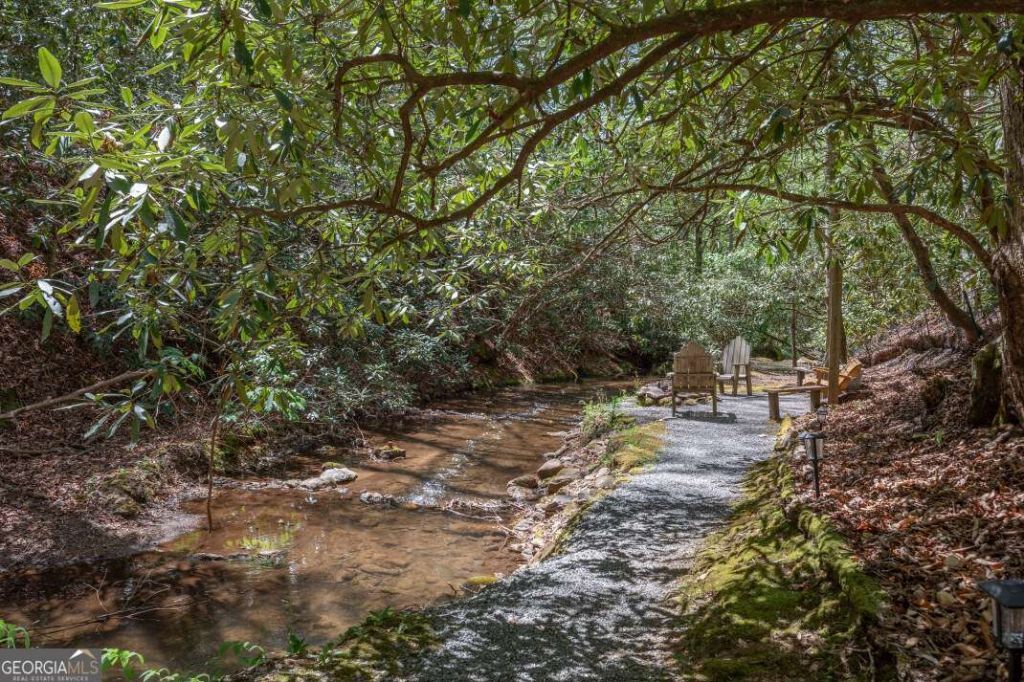 Step outside and follow the sound of the rushing stream-this is where this property truly comes alive. Tucked into a remarkably quiet and secluded setting, yet just half a mile from the main highway, the home offers the rare balance of easy access and true mountain privacy. With United States Forest Service land bordering the back, the setting is framed by untouched forest and the steady sound of water. Just a short walk-about one-tenth of a mile-from the front door leads into the National Forest, where you're surrounded by nature in every direction and the quiet, peaceful setting truly stands out. A natural path leads to the creek, where native rhododendrons, azaleas, mountain laurel, and Japanese maples create a timeless North Georgia landscape. Outdoor living is effortless-gather around the fire pit, relax on the swing, or enjoy the sitting deck as the stream flows just beyond. For outdoor enthusiasts, access is exceptional. The Appalachian Trail is just minutes away, with nearby entry points at Dick's Creek Gap and Tom Cowart Gap. From here, enjoy easy access to Lake Chatuge, Lake Burton, and nearby Clayton, Blairsville, and Helen. Inside, the cabin is designed for comfort and connection. The main living area features a glass-front wood stove and a secondary living space that opens to the outdoors. The game room and laundry area include doors leading directly to the back deck, creating an easy indoor-outdoor flow. Upstairs, three bedrooms provide peaceful retreats, including a standout third bedroom with its own sitting area and private screened deck-perfect for listening to the creek and unwinding in quiet. Most furnishings are available, making it easy to settle in immediately or continue its successful short-term rental use. Whether full-time or a weekend escape, the home offers flexibility and proven appeal. This is a place defined not just by where it is-but by how it feels to be there. Come experience it for yourself.