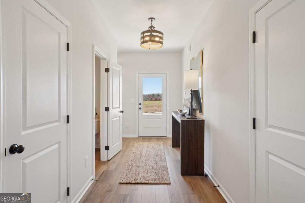 Move-in Ready! The Benson II plan by Smith Douglas Homes in the highly sought-after Southbend community in Rome, GA. This beautiful two-story new construction home offers 4 bedrooms and 2.5 baths, designed for modern living with style and comfort. Step inside through a wide, light-filled foyer that opens into a spacious open-concept layout, featuring a seamless flow between the family room with a linear fireplace,dining area, and kitchen. The designer kitchen impresses with a center island, granite countertops, ample cabinet with 42 upper cabinets and counter space, and a walk-in pantry-perfect for everyday cooking or entertaining guests. Enjoy the luxury vinyl plank flooring throughout the main living areas, adding durability and contemporary charm. The lovely back covered patio provides an ideal outdoor space for grilling or relaxing evenings. Upstairs, the private primary suite offers a large walk-in closet and a spa-like bath with a large shower, linen closet and dual vanity. Three additional bedrooms share a full bath and are conveniently located near the laundry room. Additional features include 9-foot ceilings on both levels and extra windows in the family room and stairway for enhanced natural light. Located in Rome, Georgia, Southbend offers easy access to schools, shopping, dining, and major highways. Primary photo of home secondary photos are representative of the plan and not of the actual home. Seller incentives available when using preferred lender!