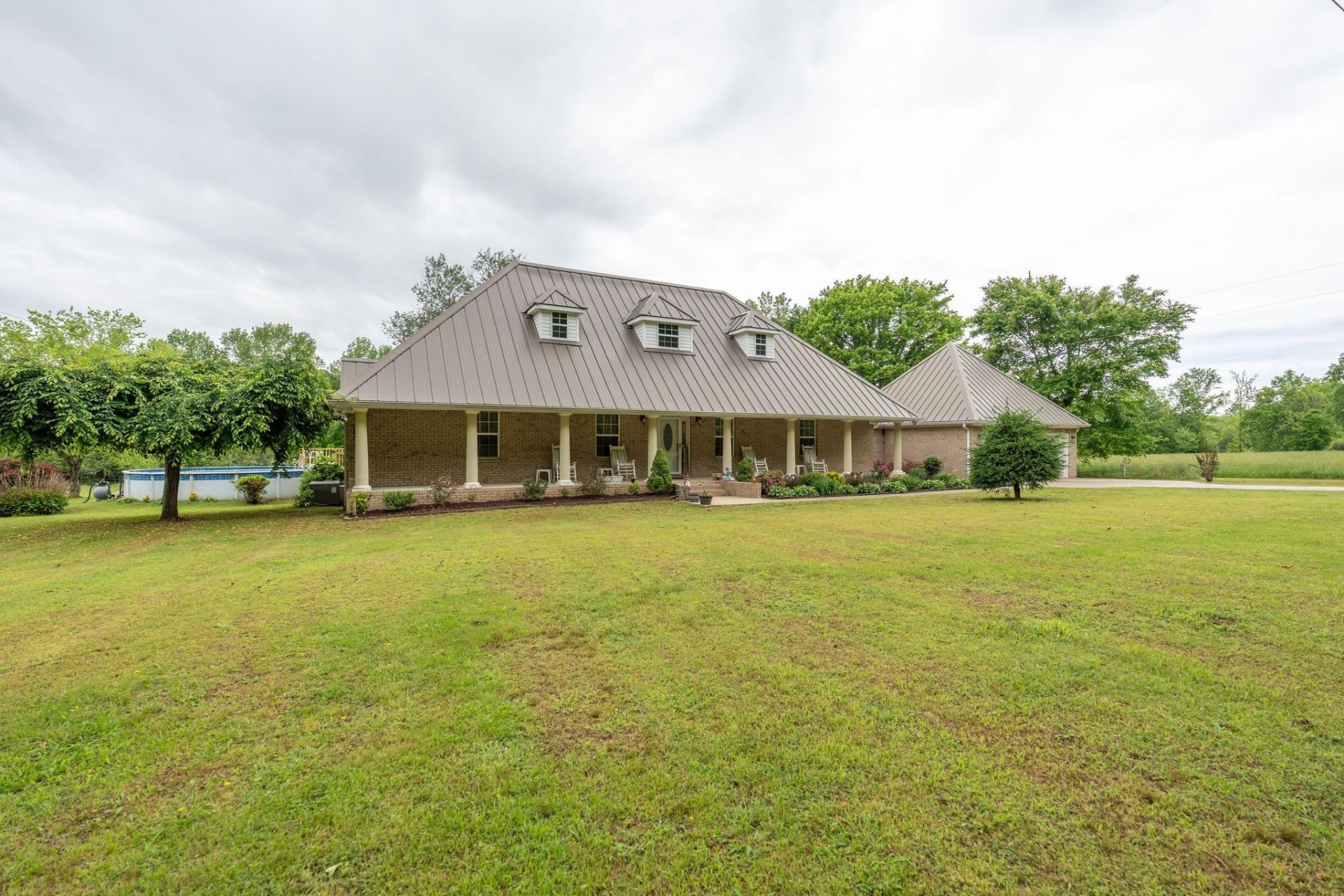 Welcome to your own slice of country paradise-where space, style, and value come together in a way that's nearly impossible to find right now. This beautifully designed 2,800 sq ft home sits on nearly 2 acres, offering the perfect blend of privacy, functionality, and scenic charm. With 3 spacious bedrooms and 2 full baths, the layout is both comfortable and practical, featuring a large bonus room that can flex to fit your lifestyle-whether you need a media space, home office, or playroom. The home's architecture stands out immediately, complemented by a striking standing seam metal roof that adds both durability and timeless appeal. Inside and out, you'll appreciate the thoughtful design and inviting feel throughout. Step outside and take in peaceful farm views from your private deck off the primary suite-a perfect spot to start or end your day. The property also features an above-ground pool for summer enjoyment, plus plenty of open space to roam. Need room for hobbies or storage? You've got it. In addition to the attached 2-car garage, there's a detached workshop ideal for projects, equipment, or extra storage. Safety and peace of mind come standard with a storm shelter already in place. One of the most valuable features: the lot includes a second septic system, giving you the rare opportunity to build an additional home-perfect for multi-generational living, rental income, or future expansion. All of this in a quiet country setting with an easy commute to Florence, AL or Lawrenceburg-giving you the best of both worlds. And here's the bottom line: finding this level of quality, acreage, and features at this price point is almost unheard of in today's market. Opportunities like this don't come around often.