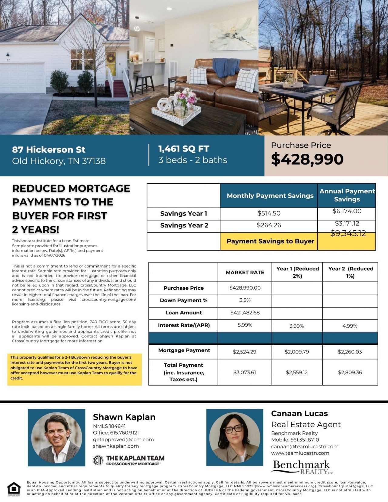 Start with a lower payment. This home offers a 2-1 buydown, reducing payments for the first two years. See photos for details.Single level living in Old Hickory on a private half acre lot with no HOA, built in 2022 with thoughtful upgrades already in place. This 3 bedroom, 2 bath home offers a layout that feels easy to live in, with a natural flow and no wasted space.Inside, you'll find granite throughout, soft close cabinetry, stainless Whirlpool appliances, under cabinet lighting, pull out storage, and two pantries that keep everything within reach.Step out to a 16x20 deck with a privacy wall and wooded views that give the backyard a quiet, tucked away feel. The primary suite includes a frameless tiled shower, while the secondary bath offers a full tile surround, with double vanities in both.The updates here were made with comfort and long term care in mind, including an electric fireplace, whole home air purification, smart thermostat and entry, gutter covers, French drains, and buried power lines that helped maintain power during the recent ice storm.The garage has been upgraded with added lighting, insulation, overhead storage, and an insulated door. Transferable termite coverage, crawl space pest protection, and regular HVAC maintenance are already in place.Close to Old Hickory conveniences, with everyday shopping, dining, and parks just minutes away.